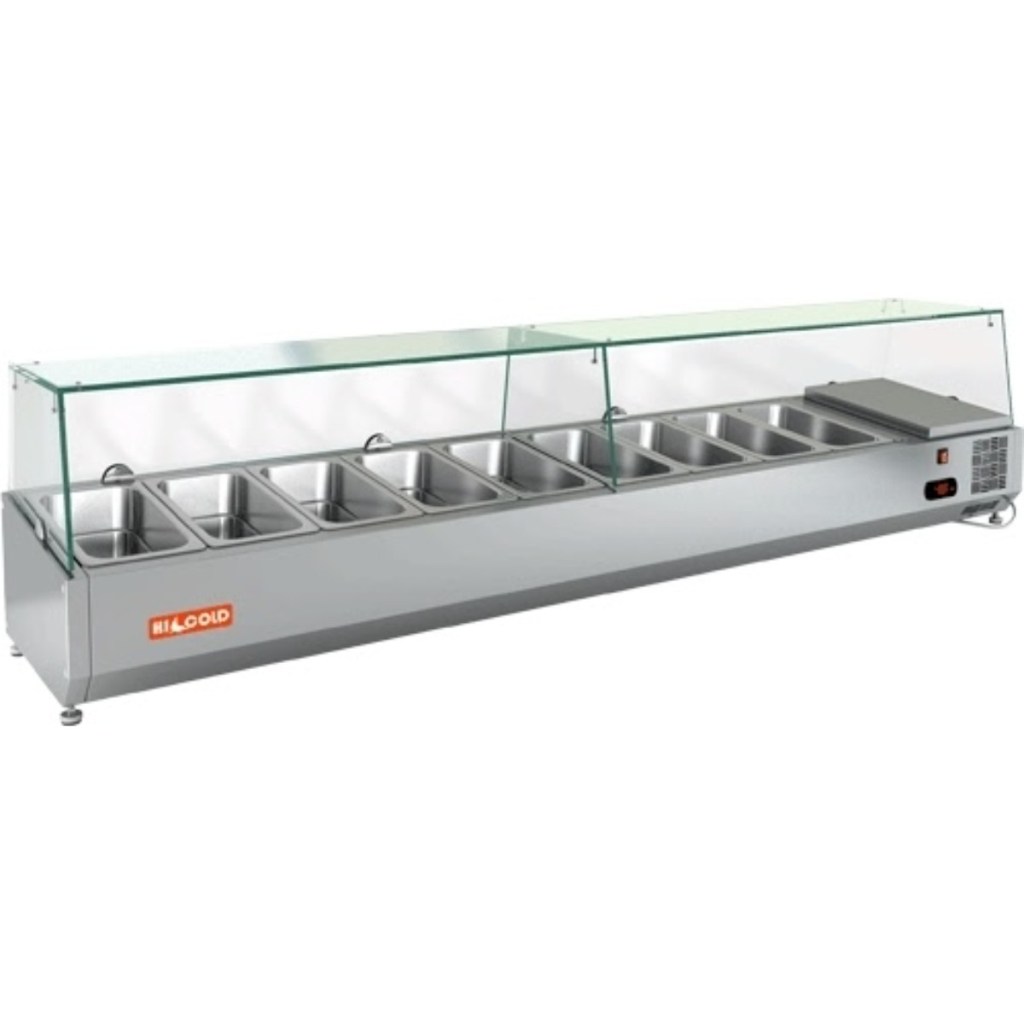Каталог оборудования Холодильное оборудованиеВитрины для ингредиентовВитрина холодильная для ингредиентов HICOLD VRTG 1970 к PZЕ3 (1/3) Витрина холодильная для ингредиентов HICOLD VRTG 1970 к PZЕ3 (1/3) Код товара: 064-657 Поделиться: WhatsAppTelegram СравнитьДобавить в КПВ избранное 0 72 729 ₽ В корзину 0 шт Под заказСамовывоз сегодня бесплатно Взять в кредит Купить в лизинг Получить консультацию в WhatsApp Описание Характеристики Отзывы 0 Инструкции 3 Витрина холодильная для ингредиентов HICOLD VRTG 1970 к PZЕ3 (1/3) предназначена для охлаждения, кратковременного хранения и демонстрации ингредиентов, салатов и готовых блюд на предприятиях общественного питания и торговли. Устанавливается на холодильные столы для пиццы серии PZE3 благодаря встроенным креплениям в нижней части корпуса. На фото показана аналогичная модель с настольной установкой. Ключевые особенности: Корпус из нержавеющей стали — долговечность, простота ухода. Электронная панель управления — точная регулировка температуры. Исполнение G — стеклянная надстройка для удобного обзора продуктов. Высота витрины — 459 мм — компактное размещение на рабочей поверхности. Вместимость: 9xGN1/3 — рациональная организация хранения (гастроёмкости приобретаются отдельно). Совместимые модели столов: PZE3-1111/SN, PZE3-1111/GN HICOLD VRTG 1970 к PZЕ3 (1/3) — это профессиональная настольная витрина, которая сочетает компактные размеры, современное управление и высокое качество охлаждения. Отличный выбор для пиццерий, ресторанов и кафе, где важны удобство доступа, скорость работы и эффектная подача продуктов.Изображение товара, представленного на фото, может отличаться от его фактического вида. Показать все Габаритные размеры1970×385×459 ммДиапазон рабочей температурыот +2 до +7 °CДлина1970 ммГлубина385 ммВысота459 ммТип крышкиСтеклянная Гастроемкостей9 штТип гастроемкостейGN1/3 Мощность150 ВтНапряжение220 ВТип охлажденияСтатическое Материал изготовленияНержавеющая сталь ХладагентR134 Мощность0,15 кВтВес нетто38 кгВес брутто97 кгТип оттайкиРучная Габариты в упаковке2160×550×580 ммБрендHicold Оставить отзыв Еще никто не оставил отзыв на этот товар Инструкция на HICOLD VRTG 1970 к PZЕ3.pdfСхема установки на стол.jpgДекларация о соответствии.pdf Похожие товары Перейти в каталог Под заказ Цена по запросу Витрина для ингредиентов Polair VT2-G (1/3) открытого типа В наличии 72 104 ₽ Витрина холодильная для ингредиентов TEFCOLD VK33-120 С этим товаром покупают В наличии 79 865 ₽ Стол морозильный Cooleq SS45BT В наличии 12 637 ₽ Льдогенератор HURAKAN HKN-IMF12M В наличии 63 865 ₽ Шкаф холодильный МХМ Капри 0,5М