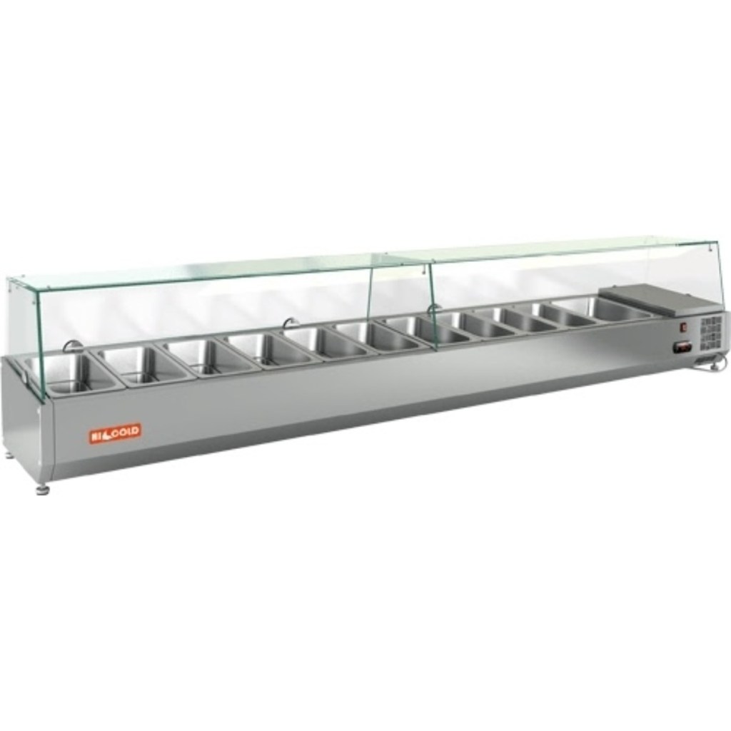 Каталог оборудования Холодильное оборудованиеВитрины для ингредиентовВитрина холодильная для ингредиентов HICOLD VRTG 2360 1/3 Витрина холодильная для ингредиентов HICOLD VRTG 2360 1/3 Код товара: 064-449 Поделиться: WhatsAppTelegram СравнитьДобавить в КПВ избранное 0 89 847 ₽ В корзину 0 шт Под заказСамовывоз сегодня бесплатно Взять в кредит Купить в лизинг Получить консультацию в WhatsApp Описание Характеристики Отзывы 0 Инструкции 2 Витрина холодильная для ингредиентов HICOLD VRTG 2360 1/3 предназначена для охлаждения, кратковременного хранения и наглядной демонстрации ингредиентов, салатов и готовых блюд на предприятиях общественного питания и в торговых точках. Гастроёмкости в комплект не входят, приобретаются отдельно. Основные особенности: Корпус выполнен из нержавеющей стали, обеспечивая долговечность и легкость в уходе; Электронная панель управления для точной настройки температуры; Модель с надстройкой из стекла (исполнение G) для удобной демонстрации продуктов; Высота витрины — 225 мм, высота стеклянной надстройки — 205 мм; Вместимость: 10 гастроёмкостей GN1/3 + 1 гастроёмкость GN1/2; Опорные ножки для устойчивой установки на столешнице. HICOLD VRTG 2360 1/3 — компактная и функциональная настольная витрина, идеально подходящая для демонстрации и кратковременного хранения продуктов на профессиональной кухне или в торговой зоне.Изображение товара, представленного на фото, может отличаться от его фактического вида. Показать все Габаритные размеры2360×385×459 ммДиапазон рабочей температурыот +2 до +7 °CДлина2360 ммГлубина385 ммВысота459 ммТип крышкиСтеклянная Гастроемкостей11 штТип гастроемкостейGN1/3, GN1/2 Мощность0,15 ВтНапряжение220 ВТип охлажденияСтатическое Материал изготовленияНержавеющая сталь ХладагентR134 Вес нетто67 кгВес брутто107 кгТип оттайкиРучная Габариты в упаковке2460×485×559 ммБрендHicold Оставить отзыв Еще никто не оставил отзыв на этот товар Инструкция на HICOLD VRTG 2360.pdfДекларация о соответствии.pdf Похожие товары Перейти в каталог Под заказ 68 518 ₽ Витрина холодильная для ингредиентов HICOLD VRTG 1915 к PZ4 (1/4) Под заказ 68 679 ₽ Витрина холодильная для ингредиентов HICOLD VRTU 2360 1/3 Под заказ 57 016 ₽ Витрина холодильная для ингредиентов HICOLD VRTU 1915 1/4 В наличии 57 826 ₽ Витрина холодильная для ингредиентов HICOLD VRTU 1835 к PZ3 (1/3) Под заказ 69 274 ₽ Витрина холодильная для ингредиентов HICOLD VRTG 1970 к PZ3 (1/4) В наличии 52 746 ₽ Витрина холодильная для ингредиентов TEFCOLD VK38-150 Под заказ 53 601 ₽ Витрина для ингредиентов Carboma A30 SM 1,2 (5 GN1/4) Под заказ 55 000 ₽ Витрина для ингредиентов Carboma A40 SM 1,2 (3 GN 1/3 + 1 GN 1/2) С этим товаром покупают В наличии 64 341 ₽ Шкаф холодильный среднетемпературный Arkto R0.5-S Под заказ 135 630 ₽ Шкаф холодильный универсальный Carboma V560 INOX Под заказ 62 170 ₽ Шкаф морозильный для икры и пресервов TEFCOLD UR90G-SUB ZERO черный В наличии 26 252 ₽ Шкаф холодильный COOLEQ TBC-85 белый Под заказ 100 815 ₽ Шкаф холодильный универсальный МХМ ШХ-1,12 СКВ купе В наличии 262 627 ₽ Шкаф морозильный с глухой дверью TEFCOLD GUF140 В наличии 78 755 ₽ Шкаф холодильный универсальный МХМ Капри 0,5 УМ В наличии 117 045 ₽ Шкаф морозильный Polair DB105-S Ранее просмотрено Под заказ 55 287 ₽ Витрина холодильная для ингредиентов HICOLD VRTU 1835 1/4