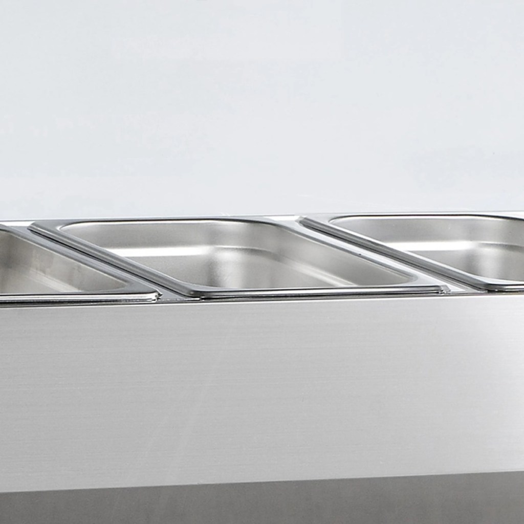 Каталог оборудования Холодильное оборудованиеВитрины для ингредиентовВитрина холодильная для ингредиентов TEFCOLD VK38-160 Витрина холодильная для ингредиентов TEFCOLD VK38-160 Код товара: 067-496 Поделиться: WhatsAppTelegram СравнитьДобавить в КПВ избранное 0 95 391 ₽ В корзину 0 шт В наличииСамовывоз сегодня бесплатно Взять в кредит Купить в лизинг Получить консультацию в WhatsApp Описание Характеристики Отзывы 0 Витрина холодильная для ингредиентов TEFCOLD VK38-160 предназначена для кратковременного хранения и демонстрации салатов, мясных и рыбных закусок, а также ингредиентов на предприятиях общественного питания и торговли. Корпус и внутренняя обшивка выполнены из нержавеющей стали, обеспечивая долговечность и легкость очистки. Гастроемкости в комплект не входят. Особенности: Статическое охлаждение — равномерное поддержание температуры для деликатных продуктов. Механическое размораживание — надежное удаление наледи без вмешательства пользователя. Хладагент R600a — экологичный и энергоэффективный. Электронный термостат и градусник — точная настройка и контроль температуры. Гнутый стеклянный колпак — обеспечивает обзор продукции и защиту от внешних воздействий. Регулируемые ножки — удобная установка и устойчивость на неровной поверхности. Климатический класс 4 — работа при температуре окружающей среды до +32°C. Вместимость — 6×GN 1/3 глубиной 150 мм, удобно для салатов и закусок. Перегородки — 5 длинных и 4 коротких для удобного разделения продуктов. Уровень шума — 47 дБ, почти бесшумная работа. Хладагент — 0,04 кг, эффективное охлаждение при минимальном расходе. Внутренние размеры — 1245×305×155 мм, компактное размещение емкостей. TEFCOLD VK33-160 — надежная и компактная витрина для демонстрации и кратковременного хранения продуктов с безопасным поддержанием температуры.Изображение товара, представленного на фото, может отличаться от его фактического вида. Показать все Габаритные размеры1600×395×435 ммДиапазон рабочей температурыот +2 до +10 °CДлина1600 ммГлубина395 ммВысота435 ммТип крышкиСтеклянная Гастроемкостей7 штТип гастроемкостейGN 1/3 Мощность0,112 ВтТип охлажденияСтатическое Уровень шума47 дБКлиматический класс4 ХладагентR600a Вес нетто56 кгВес брутто61 кгТип оттайкиРучная Габариты в упаковке1680×440×310 ммБрендTefcold Оставить отзыв Еще никто не оставил отзыв на этот товар Похожие товары Перейти в каталог В наличии 66 196 ₽ Витрина холодильная для ингредиентов HICOLD VRTG 1485 1/3 Под заказ 64 792 ₽ Витрина холодильная для ингредиентов HICOLD VRX 1500 1/3 С этим товаром покупают Под заказ 126 495 ₽ Стол холодильный среднетемпературный Carboma T70 M3-1-G 9006 (3GNG/NT Полюс) В наличии 41 718 ₽ Льдогенератор HURAKAN HKN-IMC25 (кубики) В наличии 66 070 ₽ Шкаф холодильный МХМ Капри П-390М Ранее просмотрено В наличии 96 515 ₽ Витрина холодильная для ингредиентов TEFCOLD VK38-160 S/S LID