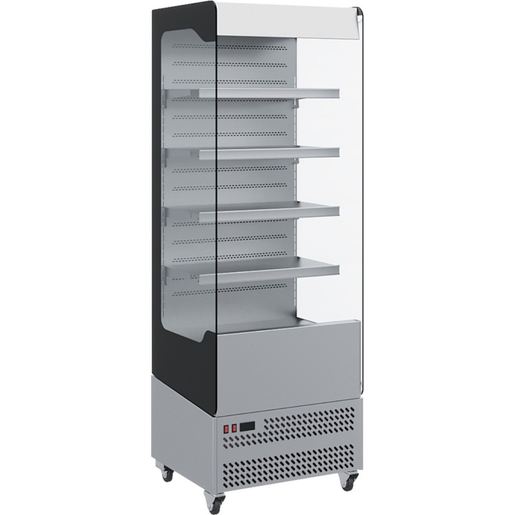Модель оснащена четырьмя рядами перфорированных полок, которые пропускают свет и обеспечивают оптимальную визуальную презентацию продукции. Горка оборудована ночными шторками и четырьмя колесами для удобного перемещения. Корпус выполнен из нержавеющей стали с теплоизоляцией из пенополиуретана, боковые панели — из закалённого стекла с 100% обзором.