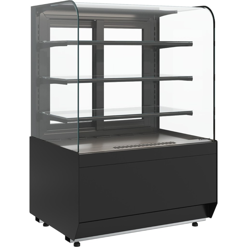 Carboma KR70 VM 0,9-1 Light (9005) — это современная и стильная кондитерская витрина, сочетающая высокую функциональность с привлекательным дизайном. Её безрамное радиусное остекление, качественное охлаждение и продуманная организация пространства делают её идеальным выбором для презентации десертов и выпечки в заведениях с высоким стандартом обслуживания и визуальной подачи.