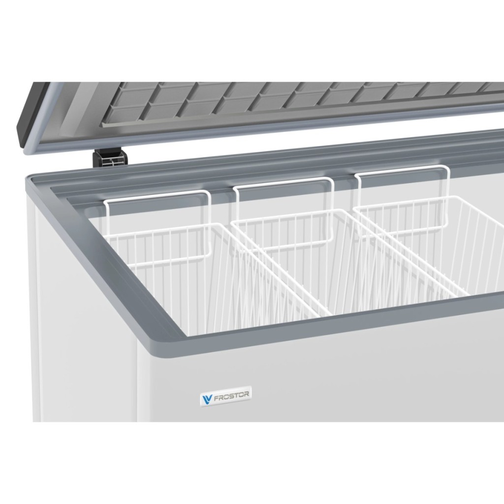 Каталог оборудования Холодильное оборудованиеЛари морозильныеЛарь морозильный с двойной глухой крышкой Frostor F 500 SD Ларь морозильный с двойной глухой крышкой Frostor F 500 SD Код товара: 005-364 Поделиться: WhatsAppTelegram СравнитьДобавить в КПВ избранное 0 52 735 ₽ В корзину 0 шт В наличии на 2 складахДоступно для заказа 11 шт.Наличие на складахВолжскг.Волжск, Йошкар-Олинское шоссе, д.20В наличии 5 шт.Волжск Промбазаг.Волжск, ул.Промбаза, д.1В наличии 6 шт.Самовывоз сегодня бесплатно Расчет стоимости доставкиОткудаВолжскВолжск ПромбазаКудаМоскваСанкт-ПетербургАстраханьБарнаулБелгородБрянскВладивостокВолгоградВоронежЕкатеринбургИвановоИжевскИркутскКазаньКалининградКемеровоКировКраснодарКрасноярскКурскЛипецкМагнитогорскМахачкалаНабережные ЧелныНижний НовгородНижний ТагилНовокузнецкНовосибирскОмскОренбургПензаПермьПятигорскРостов-на-ДонуРязаньСамараСаратовСимферопольСтавропольТверьТольяттиТомскТулаТюменьУлан-УдэУльяновскУфаХабаровскЧебоксарыЧелябинскЯрославльРассчитатьРасчет стоимости доставки указан приблизительный, более точный расчет Вам может осуществить сотрудник транспортной компании. Взять в кредит Купить в лизинг Получить консультацию в WhatsApp Описание Характеристики Отзывы 0 Инструкции 1 Ларь морозильный с глухой крышкой Frostor F 500 SD – это просторное и высоконадежное морозильное оборудование, разработанное для длительного хранения и заморозки продуктов. Он идеально подходит для использования в торговых точках, супермаркетах, на складах, а также в предприятиях общественного питания. Данная модель сочетает долговечность, экономичность и удобство эксплуатации, что делает ее отличным выбором для бизнеса и частного использования. Ключевые особенности и преимущества: Вместительная камера – позволяет размещать большие объемы замороженных продуктов, обеспечивая удобное хранение даже при интенсивной эксплуатации. Повышенная прочность и износостойкость – корпус изготовлен из качественных материалов, устойчивых к механическим повреждениям и перепадам температур, что гарантирует долгий срок службы. Энергоэффективность – благодаря высококачественной теплоизоляции и использованию современного хладагента, устройство потребляет минимальное количество электроэнергии. Комфорт в использовании – простая механическая система управления делает процесс эксплуатации понятным и удобным, а ручная разморозка обеспечивает легкость в обслуживании. Безопасность продуктов – наличие замка на крышке предотвращает несанкционированный доступ, что особенно важно для коммерческих объектов. Рациональная организация внутреннего пространства – комплект из четырех удобных корзин позволяет грамотно распределить разные виды продуктов, обеспечивая быстрый доступ к нужному товару. Оптимальное соотношение стоимости и качества – высокая надежность, эффективность и долговечность делают эту модель выгодным приобретением. Сферы применения: Продовольственные магазины и супермаркеты Оптовые склады и распределительные центры Кафе, рестораны, столовые Производственные предприятия пищевой отрасли Личное использование при необходимости хранения больших объемов продуктов Морозильный ларь Frostor F 500 SD – это оптимальное решение для хранения значительных объемов замороженной продукции. Он сочетает надежность, энергоэ