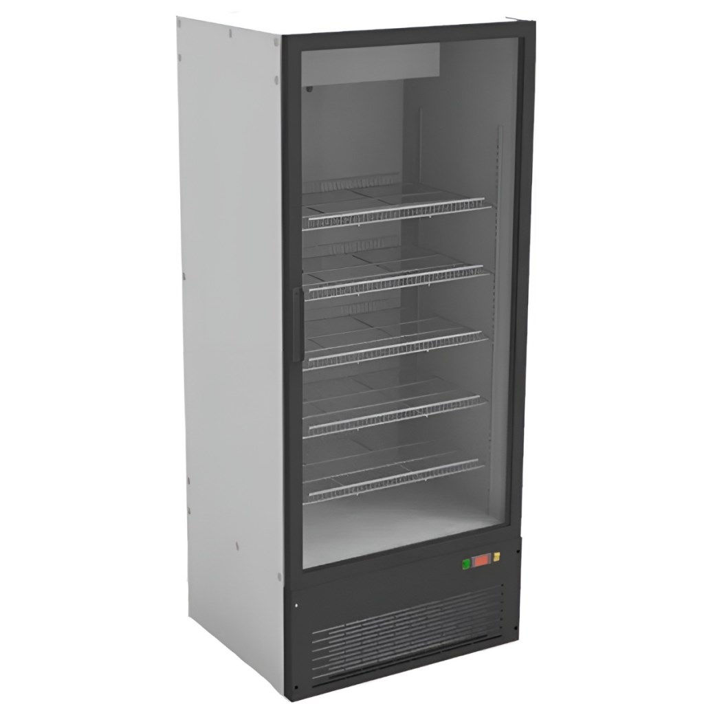 Одна распашная стеклянная дверь обеспечивает наглядную выкладку продукции и удобный контроль наличия товаров.