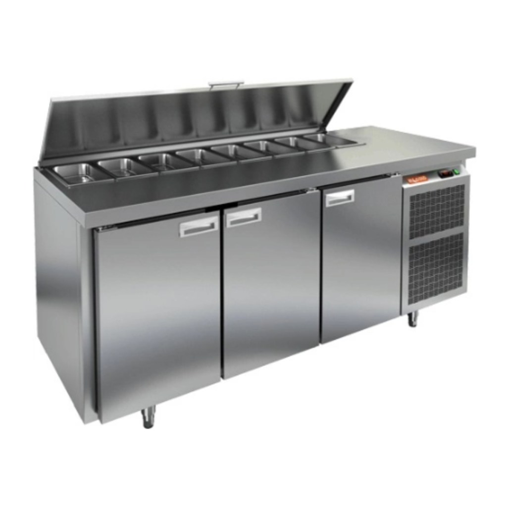 Стол холодильный для салатов HiCold SL1-111GN (1/3) О с крышкой предназначен для предприятий общественного питания и торговли. Он обеспечивает хранение и подготовку ингредиентов для пиццы, салатов и других блюд, а также охлаждение и кратковременное хранение скоропортящихся продуктов.