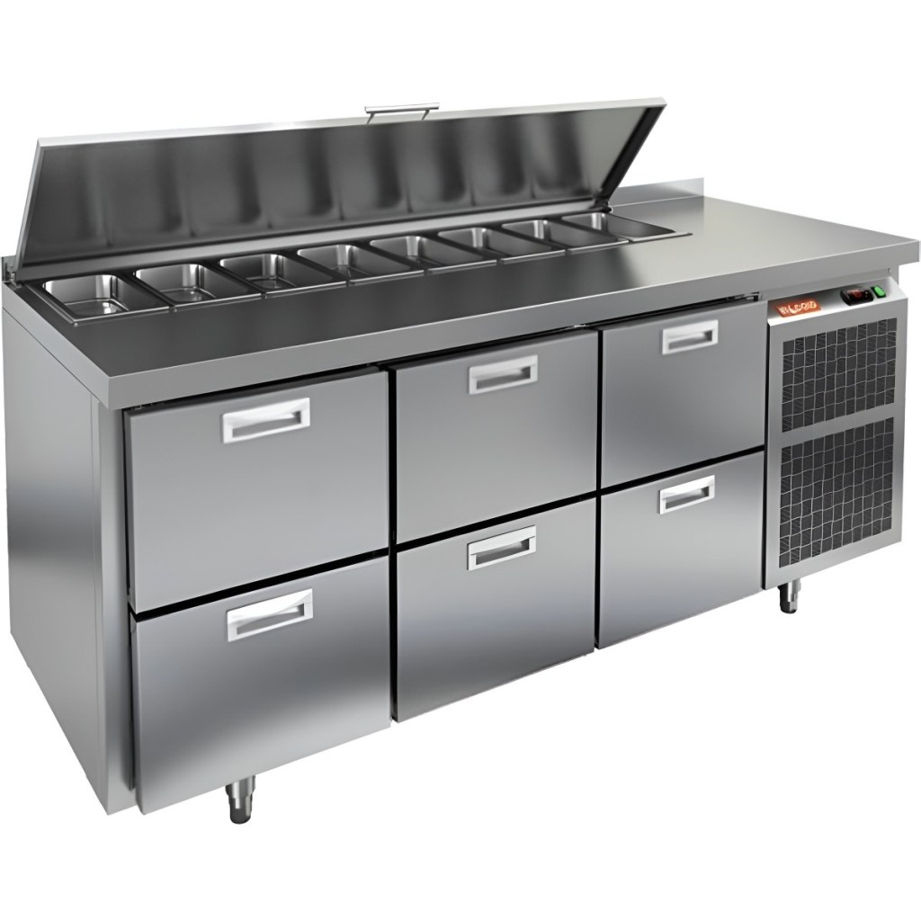 Каталог оборудования Холодильное оборудованиеСтолы охлаждаемыеСтолы холодильные для салатовСтол холодильный для салатов HiCold SL1-222GN (1/3) с крышкой Стол холодильный для салатов HiCold SL1-222GN (1/3) с крышкой Код товара: 064-844 Поделиться: WhatsAppTelegram СравнитьДобавить в КПВ избранное 0 260 092 ₽ В корзину 0 шт Под заказСамовывоз сегодня бесплатно Взять в кредит Купить в лизинг Получить консультацию в WhatsApp Описание Характеристики Отзывы 0 Инструкции 1 Стол холодильный для салатов HiCold SL1-222GN (1/3) предназначен для использования на предприятиях общественного питания и торговли. Он объединяет рабочую поверхность и охлаждаемый отсек, что делает его удобным решением для хранения, охлаждения и подготовки ингредиентов при приготовлении салатов, пиццы и других блюд. Такая конструкция позволяет повару работать быстрее и эффективнее, так как все необходимые продукты находятся под рукой. Корпус и столешница выполнены из прочной нержавеющей стали, устойчивой к коррозии и легко поддающейся санитарной обработке.Металлическая крышка защищает продукты от загрязнений и сохраняет их свежесть. Особенности модели: Электронная панель управления — точная настройка температурного режима. 6 выдвижных ящика — быстрое размещение и замена продуктов. Вместимость салат-бара — до 8 гастроемкостей глубиной до 100 мм. Автоматические доводчики — комфорт при загрузке/выгрузке. Легкозаменяемые магнитные уплотнители — надежная герметичность. Открытая агрегатная часть — быстрый доступ для обслуживания. Регулируемые по высоте ножки — устойчивость даже на неровном полу. Толщина столешницы, борта и теплоизоляции — 50 мм, что обеспечивает прочность и энергоэффективность конструкции. HiCold SL1-222GN (1/3) — практичное и удобное решение для профессиональной кухни, обеспечивающее удобную подготовку и хранение ингредиентов.Изображение товара, представленного на фото, может отличаться от его фактического вида. Показать все Габаритные размеры1835×700×850 ммДиапазон рабочей температурыот +2 до +10 °CРасположение агрегатаБоковое Материал столешницыНержавеющая Тип столаС ящиками Объём505 лТип гастроемкостейGN 1/3 Количество ящиков6 штРазмер полки530×325 ммНапряжение220 ВМощность0,46 кВтТип охлажденияДинамическое Тип оттайкиАвтоматическая СтолешницаС бортом Габариты в упаковке2000×850×1000 ммВес нетто120 кгВес брутто140 кгБрендHicold Оставить отзыв Еще никто не оставил отзыв на этот товар Декларация о соответствии.pdf Ранее просмотрено Под заказ 149 302 ₽ Стол холодильный для салатов HiCold SLE2-111GN (1/6) О З без крышки Под заказ 235 161 ₽ Стол холодильный для салатов HiCold SLE1-222GN (1/3) О без крышки