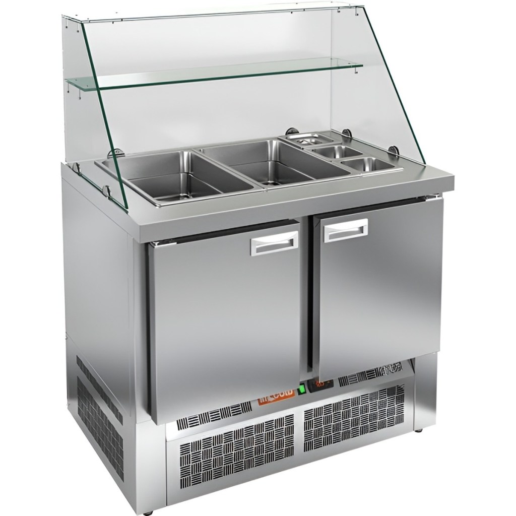 Каталог оборудования Холодильное оборудованиеСтолы охлаждаемыеСтолы холодильные для салатовСтол холодильный для салатов HiCold SLE3-11GN высокое стекло Стол холодильный для салатов HiCold SLE3-11GN высокое стекло Код товара: 062-003 Поделиться: WhatsAppTelegram СравнитьДобавить в КПВ избранное 0 142 822 ₽ В корзину 0 шт Под заказСамовывоз сегодня бесплатно Взять в кредит Купить в лизинг Получить консультацию в WhatsApp Описание Характеристики Отзывы 0 Инструкции 2 Стол холодильный для салатов HiCold SLE3-11GN высокое стекло предназначен для охлаждения и кратковременного хранения продуктов, используемых при приготовлении салатов, закусок, сэндвичей и других блюд. Он идеально подходит для предприятий общественного питания и торговли, где требуется удобный доступ к охлаждённым ингредиентам. Модель сочетает в себе рабочую поверхность и охлаждаемый объём, что обеспечивает эффективную организацию кухонного пространства. Корпус и столешница выполнены из прочной нержавеющей стали, устойчивой к коррозии и легко поддающейся очистке. Особенности модели: Электронная панель управления — обеспечивает точный контроль температуры Две полки формата GN 1/1 — для удобного размещения ингредиентов Салат-бар вмещает 2 GN 1/1 и 3 GN 1/6 — для организации набора продуктов Автоматические доводчики дверей с фиксацией открытого положения Магнитные уплотнители — легко заменяются при износе Открытая агрегатная часть — упрощает обслуживание оборудования Регулируемые ножки — для устойчивой установки на любой поверхности Глубина гастроемкостей — до 100 мм Толщина столешницы — 50 мм Толщина теплоизоляции — 50 мм Hicold SLE3-11GN — функциональное решение для профессиональной кухни, позволяющее хранить ингредиенты в охлаждённом состоянии и всегда иметь их под рукой во время приготовления блюд. Изображение товара, представленного на фото, может отличаться от его фактического вида. Показать все Габаритные размеры1000×700×1315 ммДиапазон рабочей температурыот +2 до +10 °CРасположение агрегатаНижнее Материал столешницыНержавеющая Тип столаС дверьми Тип двериГлухая Объём245 лКоличество дверей2 штТип гастроемкостейGN 1/1, GN 1/6 Размер полки530×325 ммНапряжение220 ВМощность0,15 кВтТип охлажденияДинамическое Тип оттайкиАвтоматическая СтолешницаСо стеклянным куполом Вес нетто95 кгВес брутто140 кгБрендHicold Оставить отзыв Еще никто не оставил отзыв на этот товар Паспорт на HICOLD SLE3-11GN.pdfДекларация о соответствии.pdf Ранее просмотрено Под заказ 107 362 ₽ Стол холодильный для салатов HiCold SLE3-1GN низкое стекло Под заказ 132 202 ₽ Стол холодильный для салатов HiCold SLE3-11GN низкое стекло