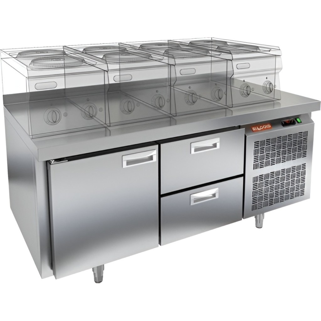 Каталог оборудования Холодильное оборудованиеСтолы охлаждаемыеСтолы холодильные под тепловое оборудованиеСтол охлаждаемый HiCold SN 12/TN LT под тепловое оборудование Стол охлаждаемый HiCold SN 12/TN LT под тепловое оборудование Код товара: 065-536 Поделиться: WhatsAppTelegram СравнитьДобавить в КПВ избранное 0 141 561 ₽ В корзину 0 шт Под заказСамовывоз сегодня бесплатно Взять в кредит Купить в лизинг Получить консультацию в WhatsApp Описание Характеристики Отзывы 0 Инструкции 2 Стол охлаждаемый HiCold SN 12/TN LT под тепловое оборудование предназначен для обработки ингредиентов и временного хранения скоропортящихся продуктов и напитков на предприятиях общественного питания и торговли. Устройство совмещает функции рабочей поверхности и холодильной камеры. Столешница рассчитана на установку теплового оборудования: под рабочей поверхностью встроен ДСП-лист, который укрепляет конструкцию и препятствует проникновению тепла внутрь. Такое решение обеспечивает дополнительную жесткость, позволяет рационально использовать рабочее пространство и повышает эффективность работы на кухне. Особенности: 1 распашная дверь — обеспечивает удобный доступ к внутреннему пространству. 2 выдвижных ящика — обеспечивают удобный доступ к продуктам и инвентарю Автоматические доводчики дверей с фиксатором открытого положения повышают эргономику и способствуют сохранению холода. Легкозаменяемые магнитные уплотнители обеспечивают плотное прилегание дверей и лёгкость в обслуживании. Открытая агрегатная часть упрощает доступ к компрессору при техническом обслуживании. Регулируемые по высоте ножки позволяют установить стол на неровной поверхности. Толщина столешницы — 50 мм обеспечивает прочность рабочей поверхности. Высота борта — 50 мм предотвращает падение продуктов и инвентаря. Толщина теплоизоляции — 50 мм способствует энергоэффективности и стабильному температурному режиму. HiCold SN 12/TN LT — это надёжное и удобное оборудование, сочетающее охлаждение и рабочее пространство. Благодаря продуманной конструкции и совместимости с гастроемкостями GN 1/1, стол станет практичным решением для кухни любого профессионального уровня.Изображение товара, представленного на фото, может отличаться от его фактического вида. Показать все Габаритные размеры1390×600×675 ммДиапазон рабочей температурыот -2 до +10 °CМатериал столешницыНержавеющая Расположение агрегатаБоковое Объём220 лТип столаС дверьми и ящиками Тип двериГлухая Количество дверей1 штКоличество ящиков2 штРазмер полки530×325 ммНапряжение220 ВМощность0,22 кВтТип охлажденияДинамический Тип оттайкиАвтоматическая СтолешницаС бортом Габариты в упаковке1550×750×850 ммВес нетто125 кгВес брутто147 кгБрендHicold Оставить отзыв Еще никто не оставил отзыв на этот товар Паспорт на HICOLD SN 12TN LT.pdfДекларация о соответствии.pdf Похожие товары Перейти в каталог В наличии 77 661 ₽ Стол холодильный среднетемпературный HiCold GN 11/TN W Под заказ 125 670 ₽ Стол холодильный среднетемпературный Abat СХС-70-01 с бортом (дверь, дверь) С этим товаром покупают В наличии 201 690 ₽ Шкаф морозильный Полюс Carboma F1400 В наличии 195 030 ₽ Плита индукционная Аbat КИП-47Н Ранее просмотрено В наличии 151 491 ₽ Шкаф холодильный TEFCOLD UR600S нержавеющий