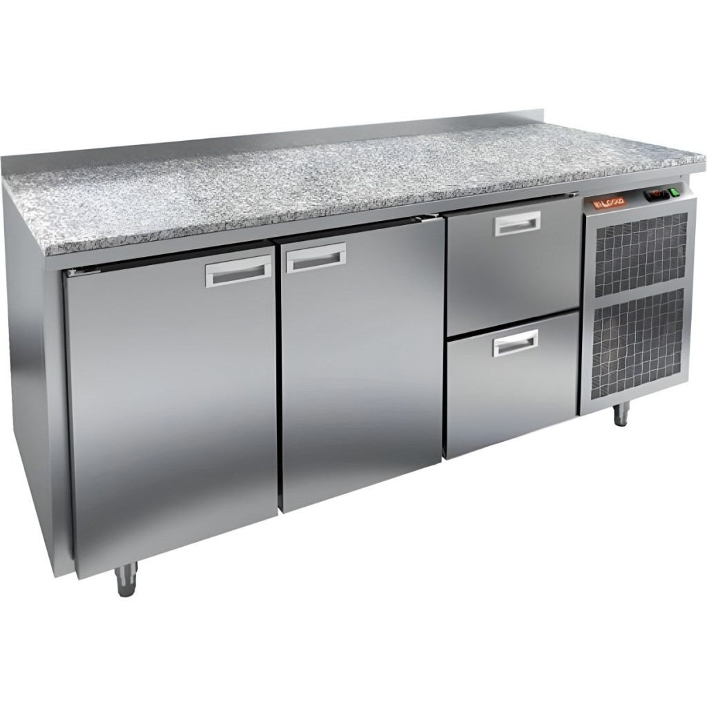Каталог оборудования Холодильное оборудованиеСтолы охлаждаемыеСтолы холодильные среднетемпературныеСтол холодильный среднетемпературный HiCold GN 112/TN камень Стол холодильный среднетемпературный HiCold GN 112/TN камень Код товара: 065-277 Поделиться: WhatsAppTelegram СравнитьДобавить в КПВ избранное 0 222 544 ₽ В корзину 0 шт Под заказСамовывоз сегодня бесплатно Взять в кредит Купить в лизинг Получить консультацию в Max Описание Характеристики Отзывы 0 Инструкции 2 Стол холодильный среднетемпературный HiCold GN 112/TN камень — профессиональное оборудование, предназначенное для кратковременного хранения скоропортящихся продуктов и напитков, а также удобной подготовки ингредиентов на предприятиях общественного питания и торговли. Модель сочетает функциональность, надежность и эргономичный дизайн. Ключевые особенности: 2 распашные двери и 2 выдвижные секции — удобный доступ к хранимым продуктам. Электронная панель управления — простое и точное регулирование температуры. Автоматические доводчики дверей с фиксатором открытого положения — комфорт при загрузке и выгрузке. Легкозаменяемые магнитные уплотнители — надежная герметичность. Регулируемые по высоте ножки — адаптация стола к любому рабочему пространству. Корпус из нержавеющей стали — долговечность, устойчивость к коррозии и простота ухода. Столешница из гранита, толщина 50 мм — прочная, устойчивая к нагрузкам и механическим повреждениям рабочая поверхность. Толщина теплоизоляции 50 мм — оптимальное сохранение температуры и жесткость конструкции. Размеры полок: 530×325 мм, в комплекте 2 полки. Рабочий температурный режим: от +12 до +37 °C. HiCold GN 112/TN камень — многофункциональный холодильный стол с гранитной столешницей, идеально подходящий для профессиональной кухни. Высокое качество материалов, продуманная конструкция и удобство эксплуатации делают его надежным помощником в интенсивной повседневной работе.Изображение товара, представленного на фото, может отличаться от его фактического вида. Показать все Габаритные размеры1835×700×850 ммДиапазон рабочей температурыот -2 до +10 °CРасположение агрегатаБоковое Материал столешницыГранитная Тип столаС дверьми и ящиками Тип двериГлухая Объём505 лКоличество дверей2 штКоличество полок2 штКоличество ящиков2 штРазмер полки530×325 ммНапряжение220 ВМощность0,46 кВтТип охлажденияДинамический Тип оттайкиАвтоматическая СтолешницаС бортом Габариты в упаковке2000×850×1000 ммВес нетто180 кгВес брутто233 кгБрендHicoldВсе холодильные столы HicoldВсе нержавеющие холодильные столы Все холодильные столы с бортом Оставить отзыв Еще никто не оставил отзыв на этот товар Паспорт на HICOLD GN 112/TN.pdfДекларация о соответствии.pdf Похожие товары Перейти в каталог В наличии 121 605 ₽ Стол холодильный среднетемпературный Cooleq GN3200TNG с бортом Под заказ 152 735 ₽ Стол холодильный среднетемпературный Abat СХС-70-02 без борта (дверь, дверь, дверь) С этим товаром покупают В наличии 93 502 ₽ Шкаф холодильный Полюс Carboma R560 Ранее просмотрено Под заказ 214 443 ₽ Стол холодильный среднетемпературный HiCold GN 111/TN М камень