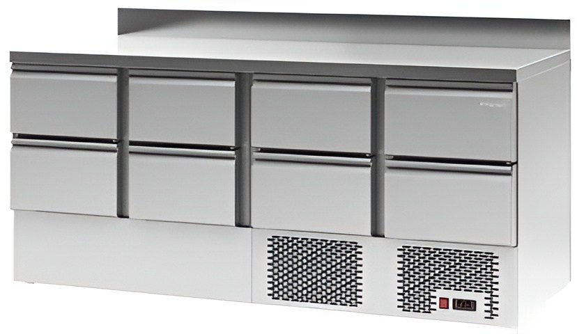Стол холодильный среднетемпературный Polair TMi4-2222-G с гранитной столешницей предназначен для хранения продуктов и обработки ингредиентов на рабочей поверхности в заведениях общественного питания и торговли.