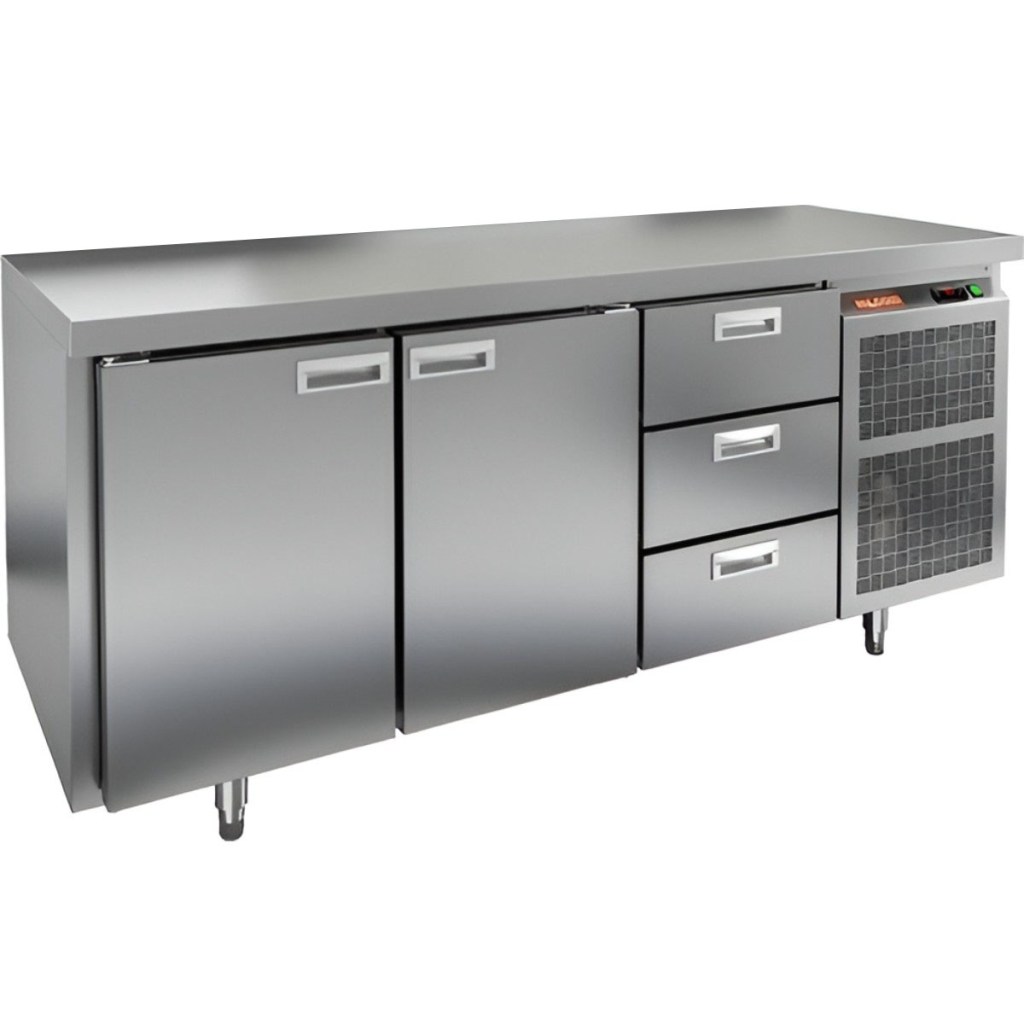 Каталог оборудования Холодильное оборудованиеСтолы охлаждаемыеСтолы морозильные низкотемпературныеСтол морозильный HiCold GN 113/BT O Стол морозильный HiCold GN 113/BT O Код товара: 065-066 Поделиться: WhatsAppTelegram СравнитьДобавить в КПВ избранное 0 220 852 ₽ В корзину 0 шт Под заказСамовывоз сегодня бесплатно Взять в кредит Купить в лизинг Получить консультацию в Max Описание Характеристики Отзывы 0 Инструкции 2 Стол морозильный HiCold GN113/BT О сочетает в себе удобную рабочую поверхность и вместительную морозильную камеру. Верхняя часть используется для раскатки теста и подготовки ингредиентов, а внутренняя камера предназначена для заморозки и хранения продуктов и полуфабрикатов. Стол оснащен двумя глухими дверями и тремя выдвижными ящиками, что обеспечивает удобный доступ к продуктам и рациональное использование внутреннего пространства. Оборудование идеально подходит для предприятий общественного питания. Особенности: Совместимость с GN-стандартом — полки, направляющие и стойки полностью интегрируются с профессиональным кухонным оборудованием. Прочный цельнозаливной корпус из нержавеющей стали с 50 мм изоляцией обеспечивает высокую герметичность и жесткость конструкции. Столешница без борта для удобной работы с крупными и длинными заготовками. Электронный блок управления с повышенной надежностью и несколькими режимами оттаивания. Вентилятор увеличенной мощности и принудительная вентиляция по всему объему камеры для равномерного и быстрого охлаждения. Интеллектуальная система размораживания и термическое выпаривание конденсата снижают затраты на обслуживание. Экономичный компрессор нового поколения снижает энергопотребление. Облегченный доступ к агрегату упрощает сервисное обслуживание. Двери с доводчиками и ПЭН предотвращают примерзание и обеспечивают плотное закрытие. Регулируемые по высоте ножки для устойчивости на разных поверхностях. Максимальная нагрузка на полку — 50 кг. Высота борта рабочей поверхности — 50 мм. Температура окружающей среды: 12–32 °C. HiCold GN113/BT О — это надежный и функциональный морозильный стол, обеспечивающий удобство работы и эффективное хранение продуктов. Он идеально подходит для интенсивной эксплуатации на профессиональных кухнях ресторанов, кафе и предприятий общественного питания.Изображение товара, представленного на фото, может отличаться от его фактического вида. Показать все Габаритные размеры1835×700×850 ммДиапазон рабочей температурыот -18 до -10 °CРасположение агрегатаБоковое Материал столешницыНержавеющая Тип столаС дверьми и ящиками Тип двериГлухая Объём505 лКоличество дверей2 штКоличество ящиков3 штНапряжение220 ВМощность0,6 кВтТип охлажденияДинамический Тип оттайкиАвтоматическая СтолешницаБзе борта Габариты в упаковке200×845×995 ммВес нетто210 кгВес брутто230 кгБрендHicoldВсе морозильные столы HicoldВсе морозильные столы без борта Оставить отзыв Еще никто не оставил отзыв на этот товар Паспорт на HICOLD GN113/BT О.pdfДекларация о соответствии.pdf Похожие товары Перейти в каталог Под заказ 169 732 ₽ Стол морозильный Abat СХН-70-02 без борта (дверь, дверь, дверь) Под заказ 156 861 ₽ Стол морозильный HiCold GN 111/BT W Ранее просмотрено Под заказ 266 752 ₽ Стол морозильный HiCold GN 133/BT O