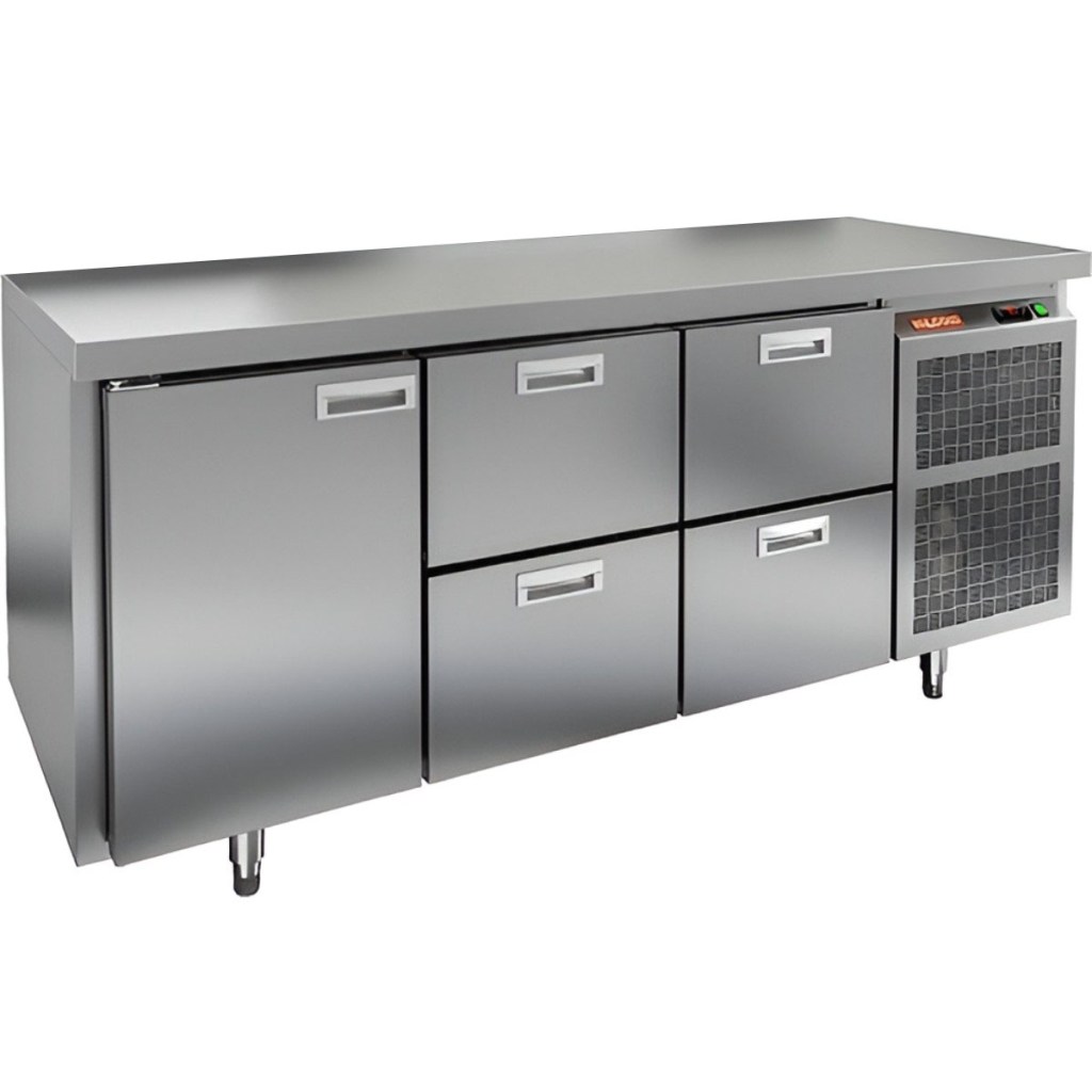 Каталог оборудования Холодильное оборудованиеСтолы охлаждаемыеСтолы морозильные низкотемпературныеСтол морозильный HiCold GN 122/BT O Стол морозильный HiCold GN 122/BT O Код товара: 065-055 Поделиться: WhatsAppTelegram СравнитьДобавить в КПВ избранное 0 236 152 ₽ В корзину 0 шт Под заказСамовывоз сегодня бесплатно Взять в кредит Купить в лизинг Получить консультацию в WhatsApp Описание Характеристики Отзывы 0 Инструкции 1 Стол морозильный HiCold GN122/BT О сочетает в себе удобную рабочую поверхность и вместительную морозильную камеру. Верхняя часть используется для раскатки теста и подготовки ингредиентов, а внутренняя камера предназначена для заморозки и хранения продуктов и полуфабрикатов. Стол оснащен одной глухой дверью и четырьмя выдвижными ящиками, что обеспечивает удобный доступ к продуктам и рациональное использование внутреннего пространства. Оборудование идеально подходит для предприятий общественного питания. Особенности: Совместимость с GN-стандартом — полки, направляющие и стойки полностью интегрируются с профессиональным кухонным оборудованием. Прочный цельнозаливной корпус из нержавеющей стали с 50 мм изоляцией обеспечивает высокую герметичность и жесткость конструкции. Столешница без борта для удобной работы с крупными и длинными заготовками. Электронный блок управления с повышенной надежностью и несколькими режимами оттаивания. Вентилятор увеличенной мощности и принудительная вентиляция по всему объему камеры для равномерного и быстрого охлаждения. Интеллектуальная система размораживания и термическое выпаривание конденсата снижают затраты на обслуживание. Экономичный компрессор нового поколения снижает энергопотребление. Облегченный доступ к агрегату упрощает сервисное обслуживание. Двери с доводчиками и ПЭН предотвращают примерзание и обеспечивают плотное закрытие. Регулируемые по высоте ножки для устойчивости на разных поверхностях. Максимальная нагрузка на полку — 50 кг. Высота борта рабочей поверхности — 50 мм. Температура окружающей среды: 12–32 °C. HiCold GN122/BT О — это надежный и функциональный морозильный стол, обеспечивающий удобство работы и эффективное хранение продуктов. Он идеально подходит для интенсивной эксплуатации на профессиональных кухнях ресторанов, кафе и предприятий общественного питания.Изображение товара, представленного на фото, может отличаться от его фактического вида. Показать все Габаритные размеры1835×700×850 ммДиапазон рабочей температурыот -18 до -10 °CРасположение агрегатаБоковое Материал столешницыНержавеющая Тип столаС дверьми и ящиками Тип двериГлухая Объём505 лКоличество дверей1 штКоличество полок1 штКоличество ящиков4 штНапряжение220 ВМощность0,6 кВтТип охлажденияДинамический Тип оттайкиАвтоматическая СтолешницаБзе борта Габариты в упаковке1960×845×995 ммВес нетто115 кгВес брутто135 кгБрендHicoldВсе морозильные столы HicoldВсе морозильные столы без борта Оставить отзыв Еще никто не оставил отзыв на этот товар Паспорт на HICOLD GN122/BT О.pdf Похожие товары Перейти в каталог Под заказ 169 732 ₽ Стол морозильный Abat СХН-70-02 без борта (дверь, дверь, дверь) Под заказ 156 861 ₽ Стол морозильный HiCold GN 111/BT W Ранее просмотрено Под заказ 223 011 ₽ Стол морозильный HiCold GN 112 BR2 BT О