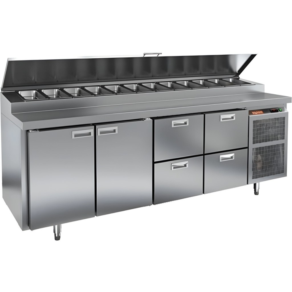Каталог оборудования Холодильное оборудованиеСтолы охлаждаемыеСтолы холодильные для пиццыСтол холодильный для пиццы HiCold PZ1-1122/GN (1/3H) Стол холодильный для пиццы HiCold PZ1-1122/GN (1/3H) Код товара: 064-694 Поделиться: WhatsAppTelegram СравнитьДобавить в КПВ избранное 0 311 842 ₽ В корзину 0 шт Под заказСамовывоз сегодня бесплатно Взять в кредит Купить в лизинг Получить консультацию в WhatsApp Описание Характеристики Отзывы 0 Стол холодильный для пиццы HiCold PZ1-1122GN (1/3H) — профессиональное оборудование для ресторанов, кафе и предприятий торговли. Он совмещает рабочую поверхность для раскатки теста и подготовки ингредиентов с охлаждаемым блоком для кратковременного хранения продуктов и напитков. Корпус и столешница выполнены из нержавеющей стали, что гарантирует долговечность и лёгкость ухода. Основные особенности: Динамическая система охлаждения — равномерное распределение холода Автоматическая оттайка — поддержка стабильной работы без наледи Электронная панель управления — точная настройка температуры и режимов 2 вместительные полки формата GN 1/1 4 выдвижных ящика для хранения дополнительных ингредиентов Автоматические доводчики дверей с фиксатором открытого положения — удобство загрузки и выгрузки Легкозаменяемые магнитные уплотнители — поддержание герметичности Открытая агрегатная часть — облегчённый доступ к техническим элементам Регулируемые по высоте ножки — установка по уровню Максимальная глубина гастроёмкостей: 150 мм (крайняя правая — 100 мм) Глубина рабочей поверхности: 324 мм Толщина столешницы и теплоизоляции: 50 мм Вместимость салат-бара: до 12 гастроёмкостей Стол холодильный HiCold PZ1-1122GN (1/3H) — функциональный и удобный стол для пиццы и салатов, совмещающий рабочую поверхность, охлаждаемый блок, полки и ящики для хранения. Разная глубина гастроёмкостей и продуманная организация рабочего пространства делают его оптимальным решением для профессиональной кухни.Изображение товара, представленного на фото, может отличаться от его фактического вида. Показать все Габаритные размеры2280×700×1000 ммДиапазон рабочей температурыот +2 до +10 °CРасположение агрегатаБоковое Материал столешницыНержавеющая Тип столаС дверьми и ящиками Тип двериГлухая Объём660 лТип гастроемкостейGN 1/3 Количество дверей2 штКоличество ящиков4 штРазмер полки530×325 ммНапряжение220 ВМощность0,73 кВтТип охлажденияДинамическое Тип оттайкиАвтоматическая Габариты в упаковке2420×850×1080 ммВес нетто208 кгВес брутто228 кгБрендHicoldВсе холодильные столы для пиццы HicoldВсе нержавеющие холодильные столы для пиццы Оставить отзыв Еще никто не оставил отзыв на этот товар Ранее просмотрено Под заказ 250 822 ₽ Стол холодильный для пиццы HiCold PZE1-1112/GN (1/3) Под заказ 345 321 ₽ Стол холодильный для пиццы HiCold PZ3-1122/GN камень