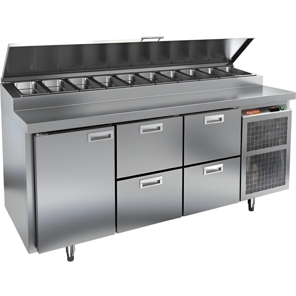 Каталог оборудования Холодильное оборудованиеСтолы охлаждаемыеСтолы холодильные для пиццыСтол холодильный для пиццы HiCold PZ1-122N (1/3) Стол холодильный для пиццы HiCold PZ1-122N (1/3) Код товара: 064-709 Поделиться: WhatsAppTelegram СравнитьДобавить в КПВ избранное 0 275 572 ₽ В корзину 0 шт Под заказСамовывоз сегодня бесплатно Взять в кредит Купить в лизинг Получить консультацию в WhatsApp Описание Характеристики Отзывы 0 Стол холодильный для пиццы HiCold PZ1-122GN (1/3) — профессиональное оборудование для предприятий общественного питания и торговли. Он сочетает рабочую поверхность для раскатки теста и подготовки ингредиентов с охлаждаемым блоком для кратковременного хранения скоропортящихся продуктов и напитков. Такое решение обеспечивает максимальное удобство — все необходимые компоненты всегда находятся под рукой. Корпус и столешница выполнены из нержавеющей стали, что гарантирует долговечность, устойчивость к повреждениям и лёгкость ухода. Основные особенности: Нержавеющая столешница и корпус — прочность, гигиеничность и лёгкость очистки Динамическая система охлаждения — равномерное распределение холода Автоматическая оттайка — стабильная работа без образования наледи Электронная панель управления — точная настройка температуры 1 дверца и 4 выдвижных ящика — удобная организация внутреннего пространства Автоматические доводчики дверцы и ящиков — комфорт при работе Легкозаменяемые магнитные уплотнители — поддержание герметичности Открытая агрегатная часть — лёгкий доступ для обслуживания Регулируемые по высоте ножки — установка на неровных поверхностях Максимальная глубина гастроёмкостей: 100 мм Глубина рабочей поверхности: 324 мм Толщина столешницы и теплоизоляции: 50 мм Вместимость салат-бара: до 10 гастроёмкостей Стол холодильный HiCold PZ1-122GN (1/3) — надёжный и функциональный холодильный стол для пиццы и салатов. Продуманная организация хранения и удобство эксплуатации обеспечивают быстрый доступ к ингредиентам и высокую производительность на профессиональной кухне.Изображение товара, представленного на фото, может отличаться от его фактического вида. Показать все Габаритные размеры1835×700×1000 ммДиапазон рабочей температурыот +2 до +10 °CРасположение агрегатаБоковое Материал столешницыНержавеющая Тип столаС дверьми и ящиками Тип двериГлухая Объём505 лТип гастроемкостейGN 1/3 Количество дверей1 штКоличество ящиков4 штРазмер полки530×325 ммНапряжение220 ВМощность0,5 кВтТип охлажденияДинамическое Тип оттайкиАвтоматическая Габариты в упаковке2000×850×1140 ммВес нетто172 кгВес брутто200 кгБрендHicoldВсе холодильные столы для пиццы HicoldВсе нержавеющие холодильные столы для пиццы Оставить отзыв Еще никто не оставил отзыв на этот товар Ранее просмотрено Под заказ 345 321 ₽ Стол холодильный для пиццы HiCold PZ3-1122/GN камень