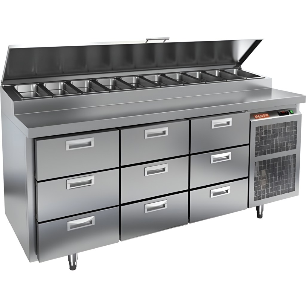 Каталог оборудования Холодильное оборудованиеСтолы охлаждаемыеСтолы холодильные для пиццыСтол холодильный для пиццы HiCold PZ1-333GN (1/3H) Стол холодильный для пиццы HiCold PZ1-333GN (1/3H) Код товара: 064-712 Поделиться: WhatsAppTelegram СравнитьДобавить в КПВ избранное 0 352 071 ₽ В корзину 0 шт Под заказСамовывоз сегодня бесплатно Взять в кредит Купить в лизинг Получить консультацию в WhatsApp Описание Характеристики Отзывы 0 Стол холодильный для пиццы HiCold PZ1-333GN (1/3H) — профессиональное оборудование для предприятий общественного питания и торговли. Он сочетает рабочую поверхность для раскатки теста и подготовки ингредиентов с охлаждаемым блоком для кратковременного хранения скоропортящихся продуктов и напитков. Такое решение обеспечивает максимальное удобство — все необходимые компоненты всегда находятся под рукой. Корпус и столешница выполнены из нержавеющей стали, что гарантирует долговечность, устойчивость к повреждениям и лёгкость ухода. Основные особенности: Нержавеющая столешница и корпус — прочность, гигиеничность и лёгкость очистки Динамическая система охлаждения — равномерное распределение холода Автоматическая оттайка — стабильная работа без образования наледи Электронная панель управления — точная настройка температуры 9 выдвижных ящиков — удобная организация внутреннего пространства без дверцы Автоматические доводчики ящиков — комфорт при работе Легкозаменяемые магнитные уплотнители — поддержание герметичности Открытая агрегатная часть — лёгкий доступ для обслуживания Регулируемые по высоте ножки — установка на неровных поверхностях Максимальная глубина гастроёмкостей: 100 мм Глубина рабочей поверхности: 324 мм Толщина столешницы и теплоизоляции: 50 мм Вместимость салат-бара: до 10 гастроёмкостей Стол холодильный HiCold PZ1-333GN (1/3H) — надёжный и функциональный холодильный стол для пиццы и салатов. Отсутствие дверцы и продуманная система хранения обеспечивают быстрый доступ к ингредиентам, удобство эксплуатации и высокую производительность на профессиональной кухне.Изображение товара, представленного на фото, может отличаться от его фактического вида. Показать все Габаритные размеры1835×700×1000 ммДиапазон рабочей температурыот +2 до +10 °CРасположение агрегатаБоковое Материал столешницыНержавеющая Тип столаС ящиками Объём505 лТип гастроемкостейGN 1/3 Количество ящиков9 штНапряжение220 ВМощность0,5 кВтТип охлажденияДинамическое Тип оттайкиАвтоматическая Габариты в упаковке2000×850×1140 ммВес нетто172 кгВес брутто200 кгБрендHicoldВсе холодильные столы для пиццы HicoldВсе нержавеющие холодильные столы для пиццы Оставить отзыв Еще никто не оставил отзыв на этот товар Ранее просмотрено Цена по запросу Витрина морозильная Иней LIDA KUB M 3,75