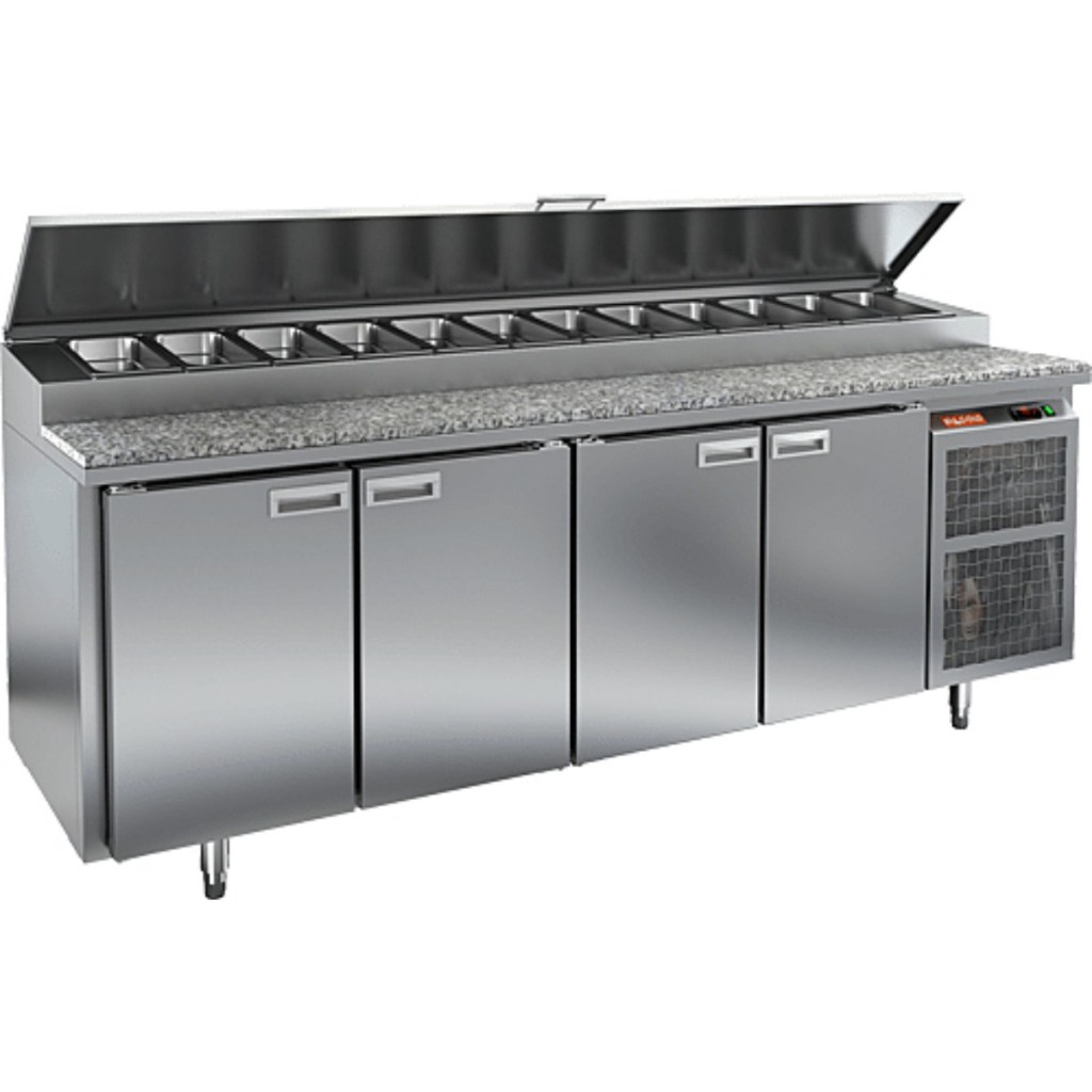 Каталог оборудования Холодильное оборудованиеСтолы охлаждаемыеСтолы холодильные для пиццыСтол холодильный для пиццы HiCold PZ2-1111GN (1/6) камень Стол холодильный для пиццы HiCold PZ2-1111GN (1/6) камень Код товара: 064-736 Поделиться: WhatsAppTelegram СравнитьДобавить в КПВ избранное 0 290 061 ₽ В корзину 0 шт Под заказСамовывоз сегодня бесплатно Взять в кредит Купить в лизинг Получить консультацию в Max Описание Характеристики Отзывы 0 Инструкции 2 Стол холодильный для пиццы HiCold PZ2-1111GN (1/6) камень предназначен для предприятий общественного питания и торговли. Он сочетает рабочую поверхность для раскатки теста и подготовки ингредиентов с охлаждаемым блоком для кратковременного хранения скоропортящихся продуктов и напитков. Совмещение этих функций значительно упрощает работу повара, позволяя иметь все необходимые компоненты под рукой. Корпус выполнен из нержавеющей стали, а рабочая столешница — из гранита, что обеспечивает долговечность, прочность и удобство работы с продуктами. Основные особенности: Гранитная столешница и корпус из нержавеющей стали — прочность, долговечность и лёгкость ухода Динамическая система охлаждения — равномерное распределение холода по всему объёму Автоматическая оттайка — стабильная работа без образования наледи Электронная панель управления — точная настройка температуры 4 вместительные внутренние полки формата GN 1/1 (размер 530×325 мм) — удобное хранение ингредиентов Автоматические доводчики дверей с фиксатором открытого положения — комфортная эксплуатация Легкозаменяемые магнитные уплотнители — поддержание герметичности Открытая агрегатная часть — лёгкий доступ для обслуживания Регулируемые по высоте ножки — установка на неровных поверхностях Максимальная глубина гастроёмкостей: 100 мм Глубина рабочей поверхности: 486 мм Толщина столешницы: 50 мм Толщина теплоизоляции: 50 мм Вместимость салат-бара: до 13 гастроёмкостей Стол холодильный HiCold PZ2-1111GN (1/6) камень — надёжный и функциональный стол для пиццы и салатов. Он обеспечивает удобство работы, быстрый доступ к ингредиентам и эффективное охлаждение продуктов. Гранитная рабочая поверхность повышает прочность и долговечность оборудования, делая его оптимальным решением для профессиональных кухонь и предприятий общественного питания.Изображение товара, представленного на фото, может отличаться от его фактического вида. Показать все Габаритные размеры2280×700×1000 ммДиапазон рабочей температурыот +2 до +10 °CРасположение агрегатаБоковое Материал столешницыГранитная Тип столаС дверьми Тип двериГлухая Объём660 лТип гастроемкостейGN 1/6 Количество дверей4 штРазмер полки530×325 ммНапряжение220 ВМощность0,48 кВтТип охлажденияДинамическое Тип оттайкиАвтоматическая Габариты в упаковке2420×850×1080 ммВес нетто208 кгВес брутто284 кгБрендHicoldВсе холодильные столы для пиццы HicoldВсе нержавеющие холодильные столы для пиццы Оставить отзыв Еще никто не оставил отзыв на этот товар Паспорт на HICOLD PZ2-1111GN.pdfДекларация о соответствии.pdf Ранее просмотрено Под заказ 288 712 ₽ Стол холодильный для пиццы HiCold PZE1-222GN (1/3) стекло