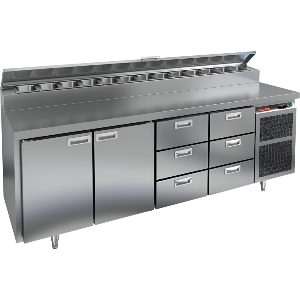 Каталог оборудования Холодильное оборудованиеСтолы охлаждаемыеСтолы холодильные для пиццыСтол холодильный для пиццы HiCold PZ2-1133GN (1/6) Стол холодильный для пиццы HiCold PZ2-1133GN (1/6) Код товара: 064-759 Поделиться: WhatsAppTelegram СравнитьДобавить в КПВ избранное 0 342 442 ₽ В корзину 0 шт Под заказСамовывоз сегодня бесплатно Взять в кредит Купить в лизинг Получить консультацию в WhatsApp Описание Характеристики Отзывы 0 Стол холодильный для пиццы HiCold PZ2-1133GN (1/6) предназначен для кухонь и предприятий общественного питания. Он используется для раскатки теста, подготовки ингредиентов для пиццы, салатов и других блюд, а также для охлаждения и кратковременного хранения скоропортящихся продуктов. Модель совмещает нержавеющую рабочую поверхность и охлаждаемый отсек с 2 дверьми и 6 ящиками, обеспечивая удобный доступ к ингредиентам и эффективное хранение. Особенности: Динамическая система охлаждения для равномерного поддержания температуры Автоматическая оттайка для удобного обслуживания Электронная панель управления для точной настройки параметров Вместительная внутренняя полка формата GN 1/1 (размер 530×325 мм) 2 двери и 6 вместительных ящика для хранения ингредиентов Автоматические доводчики дверей с фиксатором открытого положения Легкозаменяемые магнитные уплотнители для герметичности Открытая агрегатная часть для легкого доступа к компонентам Регулируемые по высоте ножки для устойчивости Нержавеющая столешница глубиной 486 мм и толщиной 50 мм — устойчива к коррозии, легко моется и гигиенична Толщина теплоизоляции: 50 мм Максимальная глубина гастроемкостей: 100 мм Вместимость салат-бара: 13 гастроемкости Стол холодильный HiCold PZ2-1133GN (1/6) — это надежный и функциональный стол для пиццы. Он объединяет рабочую поверхность и охлаждаемый отсек, упрощает хранение и подготовку ингредиентов, обеспечивает удобство работы повара и соответствует стандартам профессиональной кухни. Изображение товара, представленного на фото, может отличаться от его фактического вида. Показать все Габаритные размеры2280×700×1000 ммДиапазон рабочей температурыот +2 до +10 °CРасположение агрегатаБоковое Материал столешницыНержавеющая Тип столаС дверьми и ящиками Тип двериГлухая Объём660 лТип гастроемкостейGN 1/6 Количество дверей2 штКоличество ящиков6 штРазмер полки530×325 ммНапряжение220 ВМощность0,5 кВтТип охлажденияДинамическое Тип оттайкиАвтоматическая Габариты в упаковке2420×850×1080 ммВес нетто208 кгВес брутто240 кгБрендHicoldВсе холодильные столы для пиццы HicoldВсе нержавеющие холодильные столы для пиццы Оставить отзыв Еще никто не оставил отзыв на этот товар Ранее просмотрено Под заказ 158 391 ₽ Стол холодильный для пиццы HiCold PZE1-11GN (1/3) Под заказ 306 171 ₽ Стол холодильный для пиццы HiCold PZ2-222GN (1/6) Под заказ 220 221 ₽ Стол холодильный для пиццы HiCold PZE1-1111GN (1/3) Под заказ 314 451 ₽ Стол холодильный для пиццы HiCold PZ3-33/GN камень