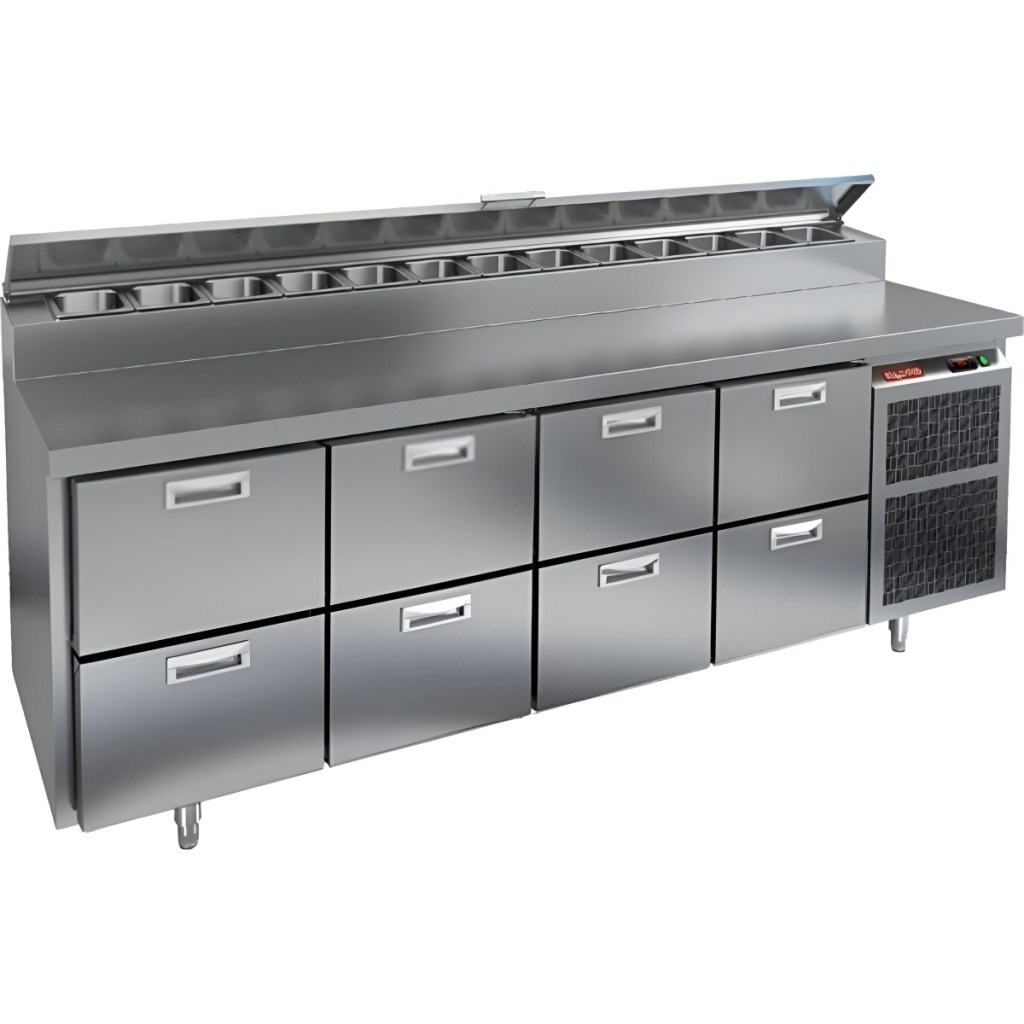 Каталог оборудования Холодильное оборудованиеСтолы охлаждаемыеСтолы холодильные для пиццыСтол холодильный для пиццы HiCold PZ2-2222GN (1/6) Стол холодильный для пиццы HiCold PZ2-2222GN (1/6) Код товара: 064-773 Поделиться: WhatsAppTelegram СравнитьДобавить в КПВ избранное 0 373 042 ₽ В корзину 0 шт Под заказСамовывоз сегодня бесплатно Взять в кредит Купить в лизинг Получить консультацию в WhatsApp Описание Характеристики Отзывы 0 Стол холодильный для пиццы HiCold PZ2-2222GN (1/6) предназначен для кухонь и предприятий общественного питания. Он используется для раскатки теста, подготовки ингредиентов для пиццы, салатов и других блюд, а также для охлаждения и кратковременного хранения скоропортящихся продуктов. Модель совмещает нержавеющую рабочую поверхность и охлаждаемый отсек с 8 выдвижными ящиками, обеспечивая удобный доступ к ингредиентам и эффективное хранение без дверей. Особенности: Динамическая система охлаждения для равномерного поддержания температуры Автоматическая оттайка для удобного обслуживания Электронная панель управления для точной настройки параметров Вместительная внутренняя полка формата GN 1/1 (размер 530×325 мм) 8 выдвижных ящиков для хранения ингредиентов Легкозаменяемые магнитные уплотнители для герметичности Открытая агрегатная часть для легкого доступа к компонентам Регулируемые по высоте ножки для устойчивости Нержавеющая столешница глубиной 486 мм и толщиной 50 мм — устойчива к коррозии, легко моется и гигиенична Толщина теплоизоляции: 50 мм Максимальная глубина гастроемкостей: 100 мм Вместимость салат-бара: 13 гастроемкости Стол холодильный HiCold PZ2-2222GN (1/6) — это надежное и удобное решение для профессиональной кухни. Он обеспечивает легкий доступ к ингредиентам, упрощает хранение и подготовку продуктов и полностью соответствует стандартам предприятий общественного питания.Изображение товара, представленного на фото, может отличаться от его фактического вида. Показать все Габаритные размеры2280×700×1000 ммДиапазон рабочей температурыот +2 до +10 °CРасположение агрегатаБоковое Материал столешницыНержавеющая Тип столаС ящиками Объём660 лТип гастроемкостейGN 1/6 Количество ящиков8 штНапряжение220 ВМощность0,5 кВтТип охлажденияДинамическое Тип оттайкиАвтоматическая Габариты в упаковке2420×850×1080 ммВес нетто208 кгВес брутто240 кгБрендHicoldВсе холодильные столы для пиццы HicoldВсе нержавеющие холодильные столы для пиццы Оставить отзыв Еще никто не оставил отзыв на этот товар Ранее просмотрено Под заказ 434 242 ₽ Стол холодильный для пиццы HiCold PZ2-3333GN (1/6) Под заказ 206 541 ₽ Стол холодильный для пиццы HiCold PZ1-11GN (1/3) М