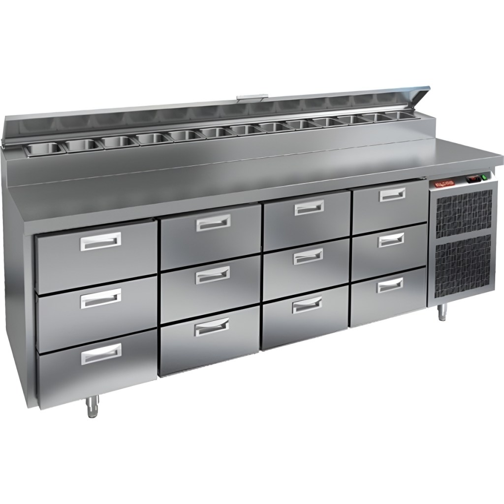 Каталог оборудования Холодильное оборудованиеСтолы охлаждаемыеСтолы холодильные для пиццыСтол холодильный для пиццы HiCold PZ2-3333GN (1/6) Стол холодильный для пиццы HiCold PZ2-3333GN (1/6) Код товара: 064-764 Поделиться: WhatsAppTelegram СравнитьДобавить в КПВ избранное 0 434 242 ₽ В корзину 0 шт Под заказСамовывоз сегодня бесплатно Взять в кредит Купить в лизинг Получить консультацию в WhatsApp Описание Характеристики Отзывы 0 Инструкции 1 Стол холодильный для пиццы HiCold PZ2-3333GN (1/6) камень предназначен для кухонь и предприятий общественного питания. Он используется для раскатки теста, подготовки ингредиентов для пиццы, салатов и других блюд, а также для охлаждения и кратковременного хранения скоропортящихся продуктов. Модель совмещает гранитную рабочую поверхность и охлаждаемый отсек с 12 выдвижными ящиками, обеспечивая удобный доступ к ингредиентам и эффективное хранение без дверей. Особенности: Динамическая система охлаждения для равномерного поддержания температуры Автоматическая оттайка для удобного обслуживания Электронная панель управления для точной настройки параметров Вместительная внутренняя полка формата GN 1/1 (размер 530×325 мм) 12 выдвижных ящиков для хранения ингредиентов Легкозаменяемые магнитные уплотнители для герметичности Открытая агрегатная часть для легкого доступа к компонентам Регулируемые по высоте ножки для устойчивости Гранитная столешница глубиной 486 мм и толщиной 50 мм — устойчива к повреждениям, легко моется и гигиенична Толщина теплоизоляции: 50 мм Максимальная глубина гастроемкостей: 100 мм Вместимость салат-бара: 13 гастроемкости Стол холодильный HiCold PZ2-3333GN (1/6) камень — это надежное и удобное решение для профессиональной кухни. Он обеспечивает легкий доступ к ингредиентам, упрощает хранение и подготовку продуктов и полностью соответствует стандартам предприятий общественного питания.Изображение товара, представленного на фото, может отличаться от его фактического вида. Показать все Габаритные размеры2280×700×1000 ммДиапазон рабочей температурыот +2 до +10 °CРасположение агрегатаБоковое Материал столешницыНержавеющая Тип столаС ящиками Объём660 лТип гастроемкостейGN 1/6 Количество ящиков12 штРазмер полки530×325 ммНапряжение220 ВМощность0,5 кВтТип охлажденияДинамическое Тип оттайкиАвтоматическая Габариты в упаковке2420×850×1080 ммВес нетто208 кгВес брутто240 кгБрендHicoldВсе холодильные столы для пиццы HicoldВсе нержавеющие холодильные столы для пиццы Оставить отзыв Еще никто не оставил отзыв на этот товар Декларация о соответствии.pdf Ранее просмотрено Под заказ 206 541 ₽ Стол холодильный для пиццы HiCold PZ1-11GN (1/3) М