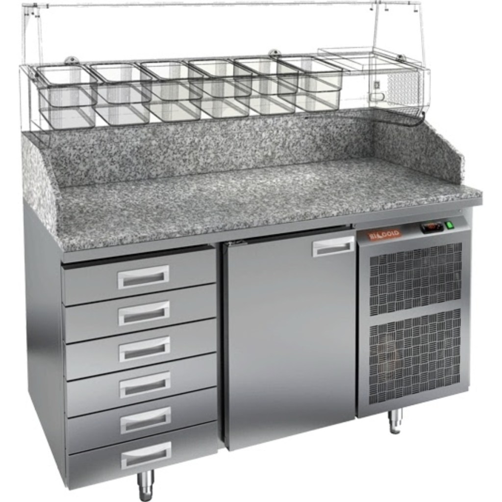 Стол холодильный для пиццы HiCold PZ4-1/GN камень — профессиональное оборудование для предприятий общественного питания и торговли. Используется для раскатки теста и обработки ингредиентов для пиццы, салатов и других блюд, а также для охлаждения и кратковременного хранения скоропортящихся продуктов и напитков. Совмещение рабочей поверхности с охлаждаемым объемом позволяет повару иметь все необходимое под рукой, что ускоряет процесс приготовления.