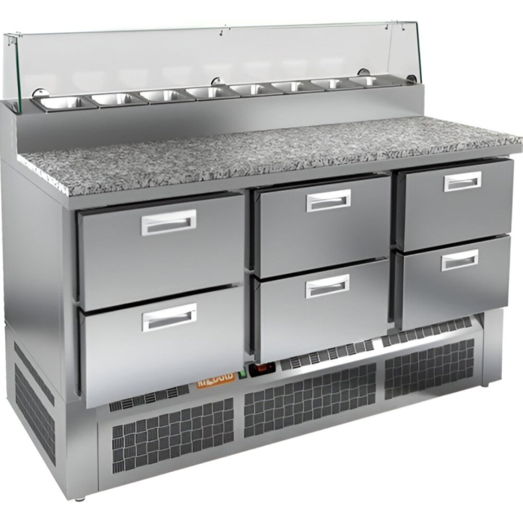 HiCold PZE2-222/GN (1/6H) камень — универсальный стол для пиццы, сочетающий вместительное охлаждение и рабочую поверхность из нержавеющей стали. Подходит для ресторанов, кафе и пиццерий, где важно удобство, гигиена и надёжность оборудования.
