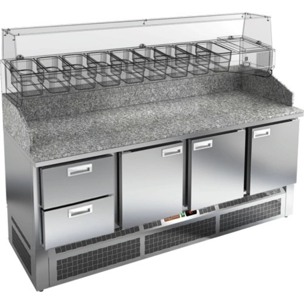 Каталог оборудования Холодильное оборудованиеСтолы охлаждаемыеСтолы холодильные для пиццыСтол холодильный для пиццы HiCold PZE3-2111/GN камень Стол холодильный для пиццы HiCold PZE3-2111/GN камень Код товара: 064-992 Поделиться: WhatsAppTelegram СравнитьДобавить в КПВ избранное 0 302 122 ₽ В корзину 0 шт Под заказСамовывоз сегодня бесплатно Взять в кредит Купить в лизинг Получить консультацию в WhatsApp Описание Характеристики Отзывы 0 Стол холодильный для пиццы HiCold PZE3-2111/GN камень предназначен для использования на предприятиях общественного питания и торговли. Он идеально подходит для раскатки теста, подготовки ингредиентов и кратковременного хранения скоропортящихся продуктов и напитков. Благодаря совмещению охлаждаемого объёма и просторной рабочей поверхности, стол значительно упрощает и ускоряет процесс приготовления блюд. Корпус изготовлен из нержавеющей стали, а прочная гранитная столешница устойчива к механическим и температурным нагрузкам. Особенности модели: Корпус: нержавеющая сталь — прочный, гигиеничный и долговечный Столешница: гранит — устойчива к царапинам, ударам и температурным нагрузкам Охлаждение: динамическое для равномерного поддержания температуры Оттайка: автоматическая — удобство и экономия времени Панель управления: электронная — точная настройка температуры Ножки: регулируемые по высоте — устойчивость на неровной поверхности Двери: 3 глухие дверцы с автоматическим доводчиком и фиксатором открытого положения Ящики: 2 выдвижных ящика — удобное хранение ингредиентов Уплотнители: легкозаменяемые магнитные — герметичность и простота обслуживания Толщина теплоизоляции: 50 мм — сохранение холода и энергоэффективность Рабочая поверхность: глубина 680 мм — удобство работы HiCold PZE3-2111/GN камень — профессиональный стол для пиццы, сочетающий в себе эргономику, долговечность и удобство, что делает его отличным выбором для интенсивной работы на кухне.Изображение товара, представленного на фото, может отличаться от его фактического вида. Показать все Габаритные размеры1970×600×1050 ммДиапазон рабочей температурыот +2 до +10 °CРасположение агрегатаНижнее Материал столешницыГранитная Тип столаС дверьми и ящиками Тип двериГлухая Объём505 лКоличество дверей2 штКоличество ящиков3 штРазмер полки530×325 ммНапряжение220 ВМощность0,5 кВтТип охлажденияДинамическое Тип оттайкиАвтоматическая Габариты в упаковке2000×850×1180 ммВес нетто240 кгВес брутто300 кгБрендHicoldВсе холодильные столы для пиццы HicoldВсе нержавеющие холодильные столы для пиццы Оставить отзыв Еще никто не оставил отзыв на этот товар Ранее просмотрено Под заказ 188 722 ₽ Стол холодильный для пиццы HiCold PZ2-11/GN (1/6) З Цена по запросу Витрина морозильная Иней LIDA KUB M 3,75