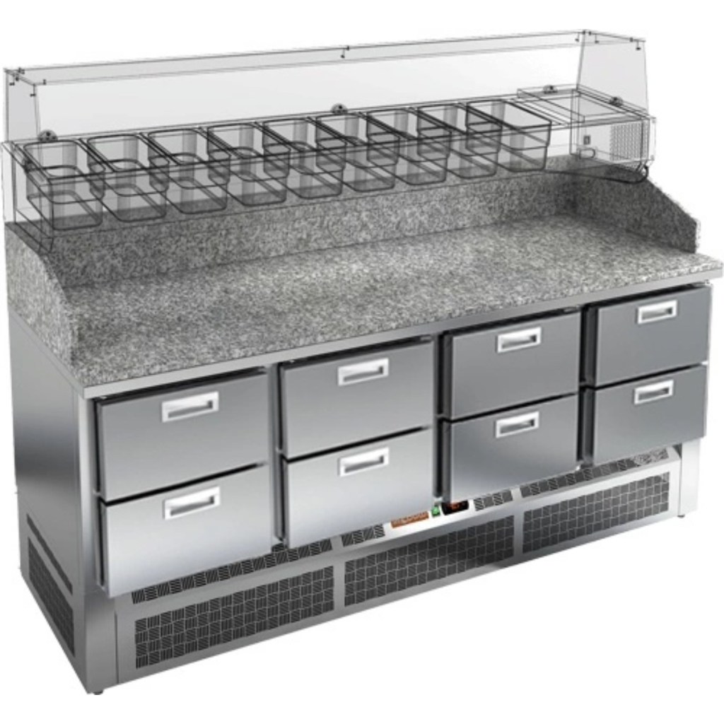 Каталог оборудования Холодильное оборудованиеСтолы охлаждаемыеСтолы холодильные для пиццыСтол холодильный для пиццы HiCold PZE3-222/GN камень Стол холодильный для пиццы HiCold PZE3-222/GN камень Код товара: 064-994 Поделиться: WhatsAppTelegram СравнитьДобавить в КПВ избранное 0 343 342 ₽ В корзину 0 шт Под заказСамовывоз сегодня бесплатно Взять в кредит Купить в лизинг Получить консультацию в Max Описание Характеристики Отзывы 0 Стол холодильный для пиццы HiCold PZE3-222/GN камень предназначен для использования в пиццериях, кафе, магазинах и ресторанах. Он идеально подходит для раскатки теста, подготовки ингредиентов для пиццы и кратковременного хранения скоропортящихся продуктов. Витрина приобретается отдельно. Особенности модели: Корпус: нержавеющая сталь — прочный, гигиеничный и долговечный Столешница: гранит — устойчива к царапинам, ударам и температурным нагрузкам Охлаждение: динамическое для равномерного поддержания температуры Оттайка: автоматическая — удобство и экономия времени Панель управления: электронная — точная настройка температуры Ножки: регулируемые по высоте — устойчивость на неровной поверхности Ящики: 6 выдвижных ящика — удобное хранение ингредиентов Уплотнители: легкозаменяемые магнитные — герметичность и простота обслуживания Толщина теплоизоляции: 50 мм — сохранение холода и энергоэффективность Рабочая поверхность: глубина 680 мм — удобство работы HiCold PZE3-222/GN камень — надёжный и функциональный холодильный стол с гранитной столешницей, который сочетает прочность, удобство в работе и эффективное охлаждение продуктов. Он станет универсальным решением для профессиональной кухни, где важны скорость, организация и сохранение свежести ингредиентов. Изображение товара, представленного на фото, может отличаться от его фактического вида. Показать все Габаритные размеры1485×700×1050 ммДиапазон рабочей температурыот +2 до +10 °CРасположение агрегатаНижнее Материал столешницыГранитная Тип столаС ящиками Объём375 лКоличество ящиков6 штРазмер полки530×325 ммНапряжение220 ВМощность0,2 кВтТип охлажденияДинамическое Тип оттайкиАвтоматическая Габариты в упаковке1700×850×1280 ммВес нетто227 кгВес брутто280 кгБрендHicoldВсе холодильные столы для пиццы HicoldВсе нержавеющие холодильные столы для пиццы Оставить отзыв Еще никто не оставил отзыв на этот товар Ранее просмотрено Под заказ 391 221 ₽ Стол холодильный для пиццы HiCold PZ3-2321/GN камень Под заказ 290 061 ₽ Стол холодильный для пиццы HiCold PZ2-1111GN (1/6) камень Под заказ 288 712 ₽ Стол холодильный для пиццы HiCold PZE1-222GN (1/3) стекло
