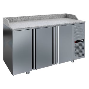 Каталог оборудования Холодильное оборудованиеСтолы охлаждаемыеСтолы холодильные для пиццыСтол холодильный для пиццы Polair TM3pizza-G Стол холодильный для пиццы Polair TM3pizza-G Код товара: 001-595 Поделиться: WhatsAppTelegram СравнитьДобавить в КПВ избранное 0 179 041 ₽ В корзину 0 шт Под заказСамовывоз сегодня бесплатно Взять в кредит Купить в лизинг Получить консультацию в WhatsApp Описание Характеристики Отзывы 0 Инструкции 3 Стол холодильный для пиццы Polair TM3pizza-G - это профессиональное оборудование, созданное для хранения продуктов и обработки ингредиентов на предприятиях общественного питания и в сфере торговли. Модель способна стабильно функционировать даже при температуре окружающей среды до +43°C, что делает ее идеальным решением для работы в условиях интенсивной эксплуатации. Корпус стола изготовлен из нержавеющей стали как снаружи, так и внутри (за исключением задней стенки), что обеспечивает долговечность, гигиеничность и легкость в уходе. Электронный блок управления позволяет точно настраивать и контролировать температуру, а также проводить диагностику холодильной системы для поддержания ее эффективной работы. Особенностью стола является его рабочая поверхность, выполненная из специально отшлифованного натурального гранита. Этот материал идеально подходит для приготовления и сборки пиццы благодаря своей прочности, устойчивости к повреждениям и гигиеничности. Рабочая зона окружена гранитными бортами высотой 150 мм с трех сторон, что обеспечивает удобство в работе и дополнительную защиту. Такая конструкция позволяет разместить охлаждаемую витрину для топингов, не занимая основное пространство столешницы и не мешая работе пиццайоло. Polair TM3pizza-G - это сочетание функциональности, надежности и эргономичного дизайна. Он станет незаменимым помощником на кухне пиццерии, кафе или ресторана, обеспечивая комфортную работу с ингредиентами и их сохранность. Изображение товара, представленного на фото, может отличаться от его фактического вида. Показать все Габаритные размеры1630×605×850/1000 ммДиапазон рабочей температурыот +1до +10 °CРасположение агрегатаБоковое Материал столешницыГранитная Тип столаС дверьми Тип двериГлухая Объём400 лКоличество дверей3 штНапряжение220 ВРасход электроэнергии в сутки8,40 кВтТип охлажденияДинамическое Тип оттайкиАвтоматическая ХладагентR290 Габариты в упаковке1725×815×1070 ммВес нетто155 кгВес брутто180 кгБрендPolairВсе холодильные столы для пиццы Polair Оставить отзыв Еще никто не оставил отзыв на этот товар Инструкция Столы холодильные Polair.pdfОбзор Столы холодильные Polair.pdfДекларация столы холодильные для пиццы Polair.pdf Похожие товары Перейти в каталог Под заказ 174 369 ₽ Стол холодильный для пиццы Polair TM3pizza-GC В наличии 221 440 ₽ Стол холодильный для пиццы Cooleq PZ2610TN-VRX380 Под заказ 197 749 ₽ Стол холодильный для пиццы TEFCOLD PT930 Под заказ 258 953 ₽ Стол холодильный для пиццы TEFCOLD PT1365 + VK33-140 С этим товаром покупают Под заказ 161 811 ₽ Шкаф холодильный МХМ Капри 1,5 УМ нержавейка В наличии 15 414 ₽ Индукционная плита HURAKAN HKN-HST35F PRO Ранее просмотрено Под заказ 60 767 ₽ Моноблок холодильный среднетемпературный МХМ MMN 110 В наличии 100 544 ₽ Стол холодильный для пиццы HURAKAN HKN-PZL3 В наличии 400 562 ₽ Сплит-система холодильная среднетемпературная Intercold MCM 471 FT (опция -30° С) Под заказ 180 100 ₽ Моноблок холодильный среднетемпературный Ариада AMS 330N
