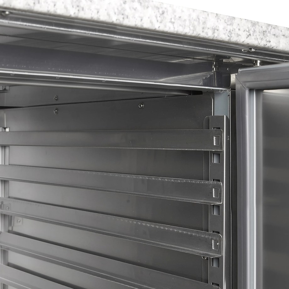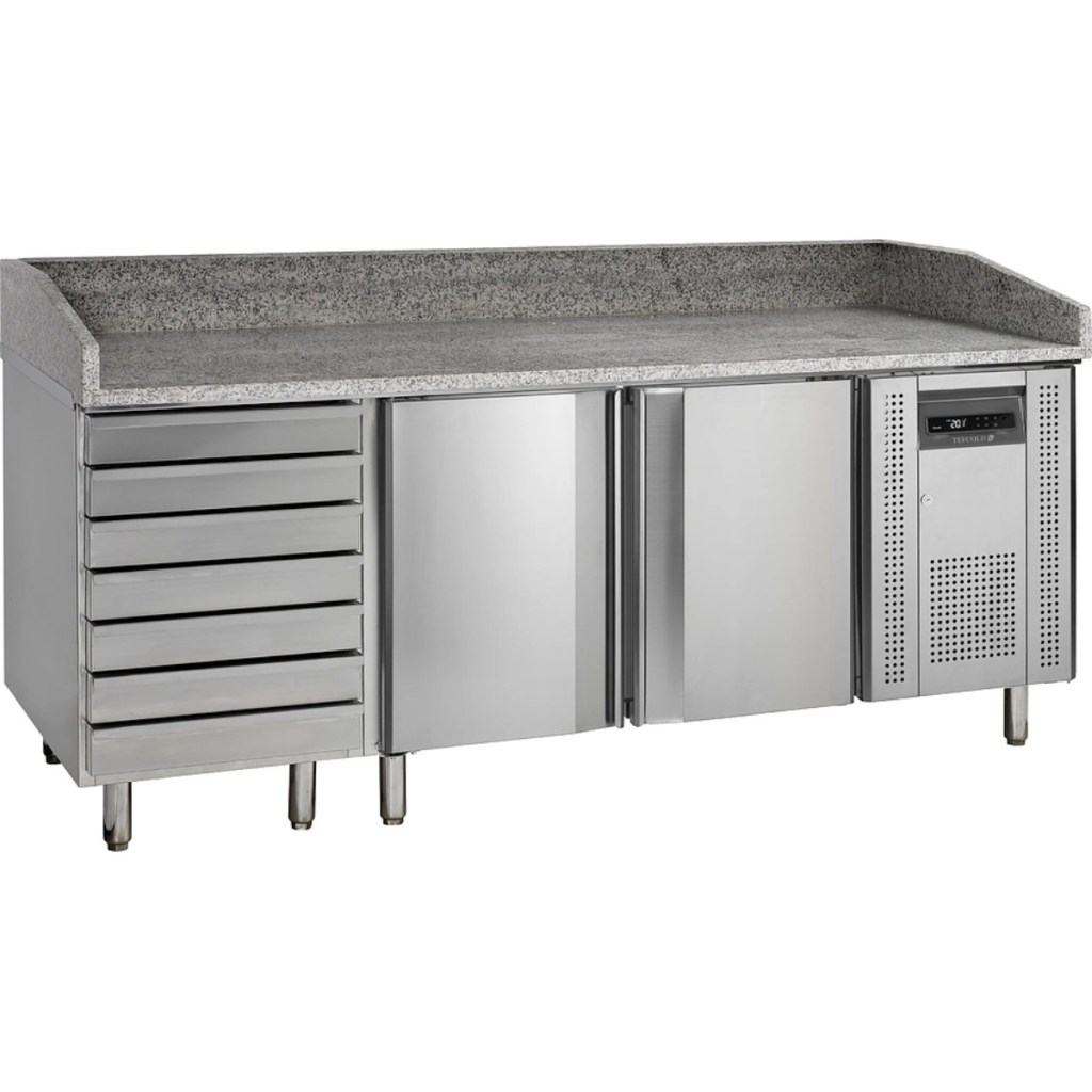 Каталог оборудования Холодильное оборудованиеСтолы охлаждаемыеСтолы холодильные для пиццыСтол холодильный для пиццы TEFCOLD PT1310 Стол холодильный для пиццы TEFCOLD PT1310 Код товара: 066-710 Поделиться: WhatsAppTelegram 0 Цена по запросу Получить консультацию в WhatsApp Описание Характеристики Отзывы 0 Стол холодильный для пиццы TEFCOLD PT1310 предназначен для обработки ингредиентов, охлаждения и кратковременного хранения продуктов на предприятиях общественного питания и торговли. Корпус и внутренняя обшивка выполнены из нержавеющей стали AISI 304, что обеспечивает долговечность и простоту ухода. Особенности: Динамическое охлаждение для равномерного поддержания температуры; Автоматическое размораживание; Электронный термостат с цифровой индикацией; Экологически безопасный хладагент R600a; Самозакрывающиеся двери для удобства эксплуатации; Градусник для контроля температуры; Секция с ящиками без охлаждения для хранения ингредиентов; 7 комплектов направляющих для поддонов для пиццы; 8 регулируемых по высоте ножек; Климатический класс 4; Полезный объем: 370 л; Энергопотребление: 2,41 кВт/сутки; Уровень шума: 42 дБ; Масса хладагента: 0,095 кг; Внутренние размеры: 1052×630×589 мм. TEFCOLD PT1310 — это надёжный и функциональный стол для профессиональных кухонь, обеспечивающий эффективное охлаждение, хранение и удобный доступ к ингредиентам для приготовления пиццы. Прочный корпус из нержавеющей стали и динамическая система охлаждения делают эксплуатацию простой и долговечной.Изображение товара, представленного на фото, может отличаться от его фактического вида. Показать все Габаритные размеры2045×800×1445 ммДиапазон рабочей температурыот +2 до +10 °CРасположение агрегатаБоковое Материал столешницыГранитная Тип столаС ящиками Тип двериГлухая Полезный объем370 лОбъём390 лКоличество дверей2 штКоличество ящиков7 штРазмер полки400×600 ммНапряжение220 ВМощность0,3 кВтРасход электроэнергии в сутки2,41 кВтТип охлажденияДинамическое Тип оттайкиАвтоматическая ХладагентR600a СтолешницаС бортом Габариты в упаковке2050×840×1050 ммВес нетто320 кгБрендTefcold Оставить отзыв Еще никто не оставил отзыв на этот товар Ранее просмотрено В наличии Цена по запросу Стол холодильный для пиццы TEFCOLD PT1365 Под заказ 142 461 ₽ Стол холодильный для салатов HiCold SL2-11SN (1/6)