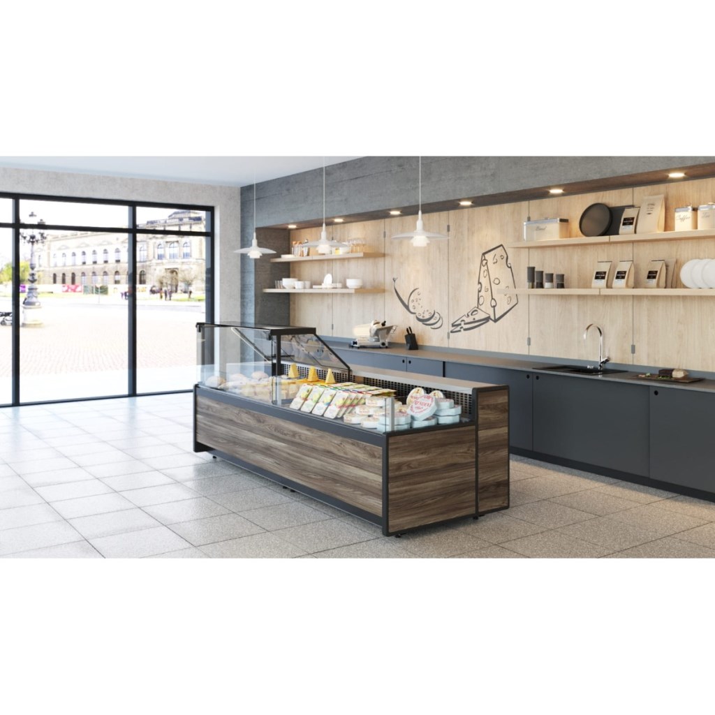 Витрина холодильная Carboma GC111 SM 2,0-2 (открытая) (1008 Темный дуб) предназначена для эффективного охлаждения, кратковременного хранения и привлекательной демонстрации разнообразных продуктов и готовых блюд.