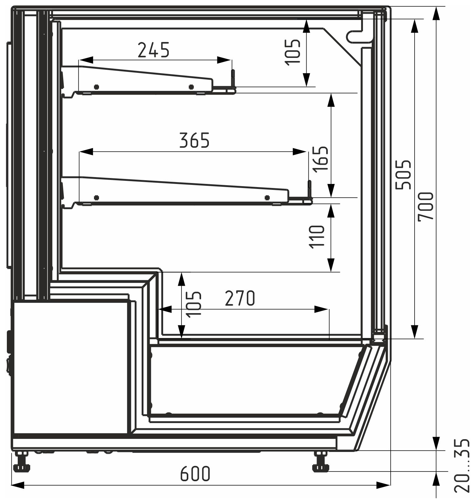 • Максимальная высота выкладки продуктов: на нижнем поддоне — до 150 мм, на полках— до 100 мм.